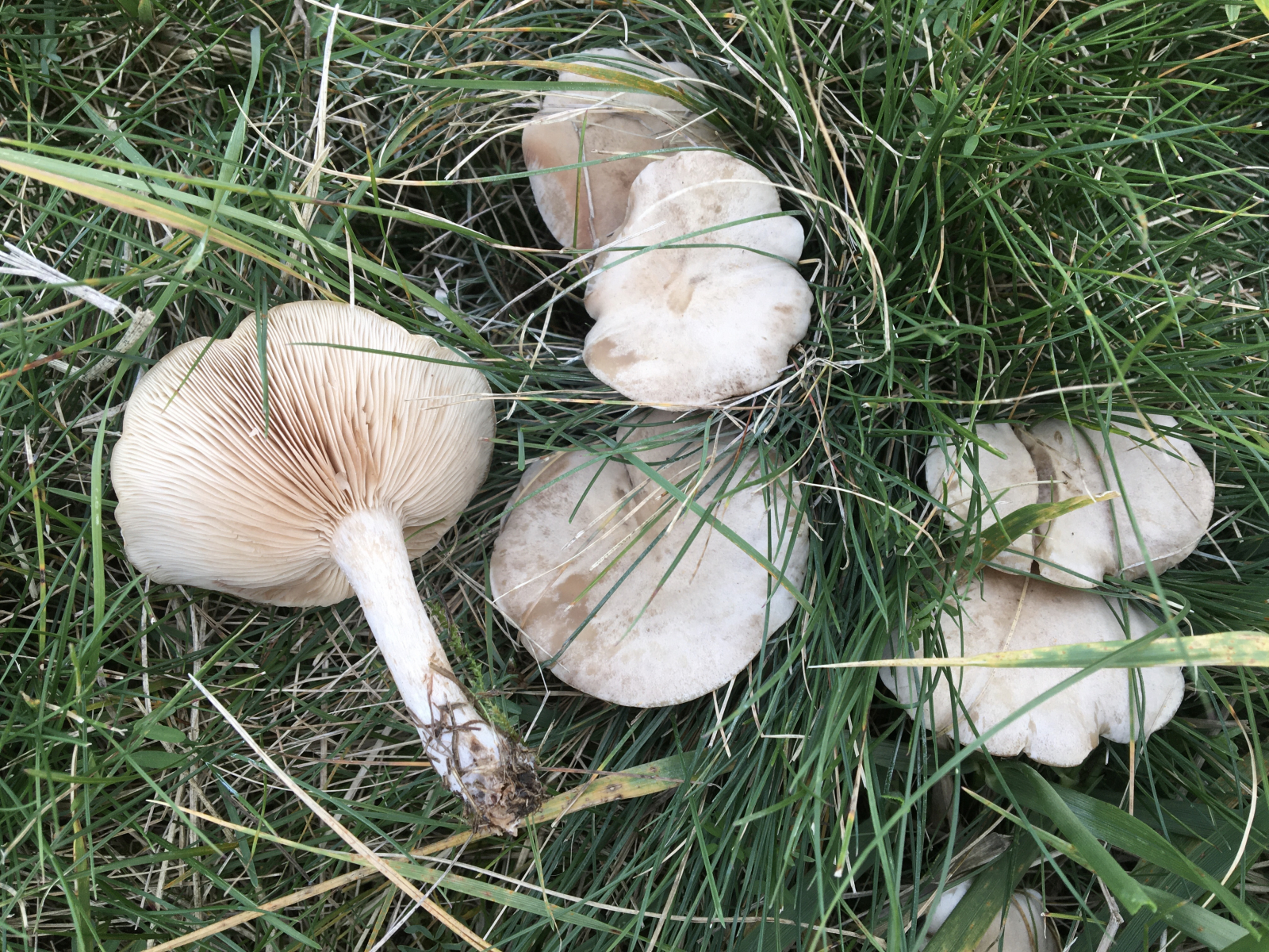 Diese gehören zur Gattung Lepista, ich vermute Lepista caespitosa. Die wuchsen da sehr zahlreich büschelig in großen Hexenringen.