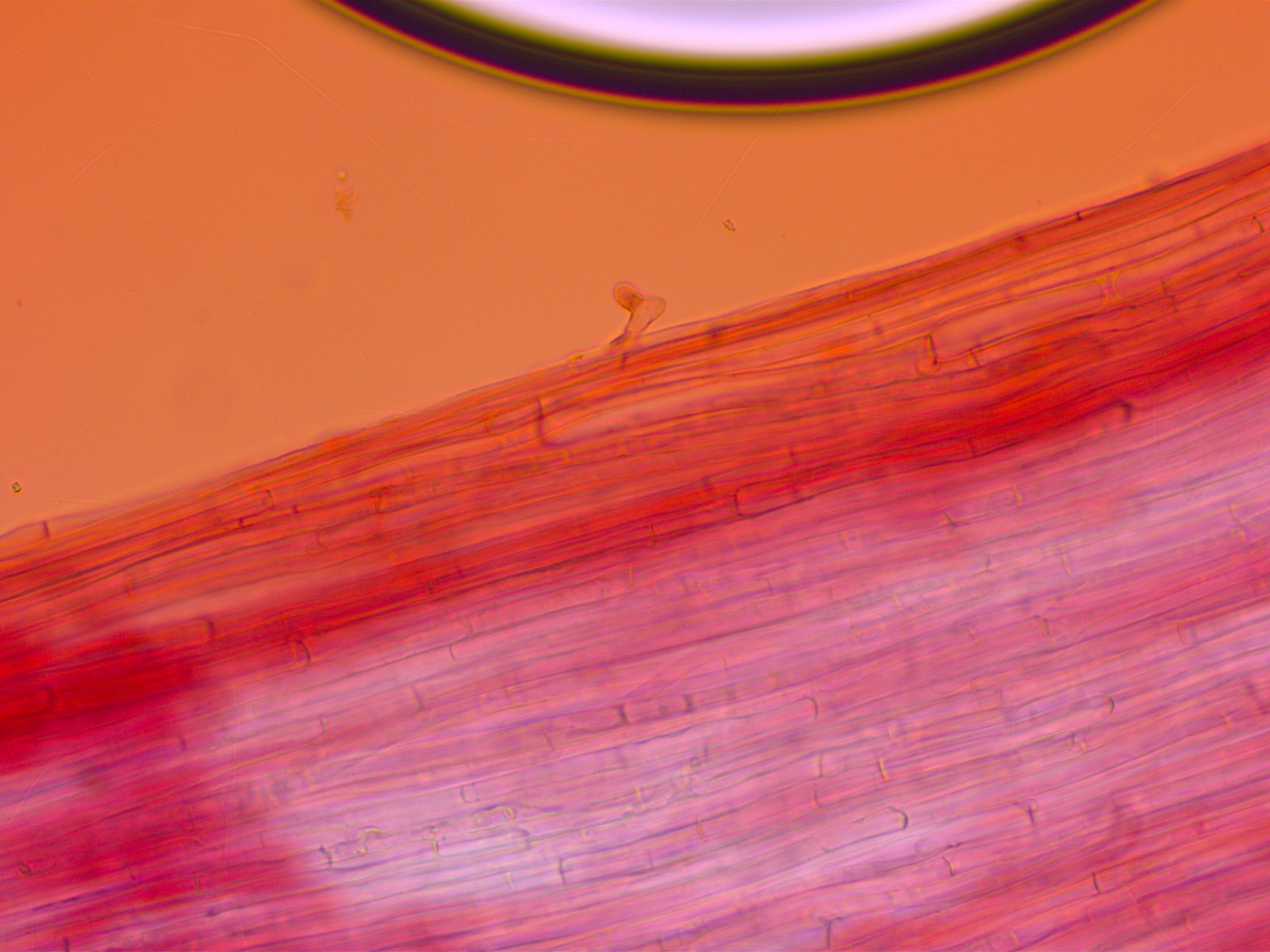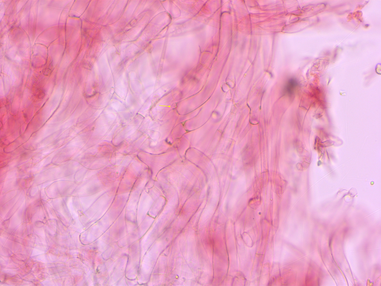 Stielhyphen mit einzelnen Auswüchsen, sie man als Kaulozystiden bezeichnen könnte