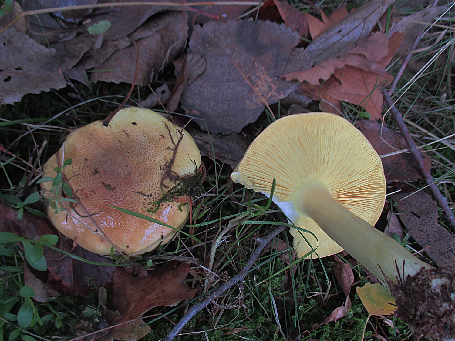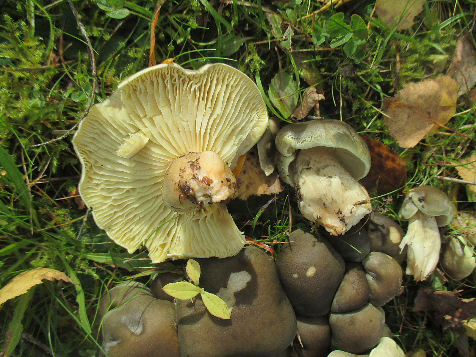 diese Pilze sind mir gestern auf einer grasigen Stelle am Wegrand begegnet und ich dachte erst, dass es sich um den Büscheligen Rasling handeln könnte. Das Fleisch ist aber absolut nicht gummiartig sondern weich und der Stiel ist beim Herausnehmen sofort zerbröselt. Auch die Hut- und die Lamellenfarbe passt nicht zum Rasling. Der Geruch war leicht mehlig.
