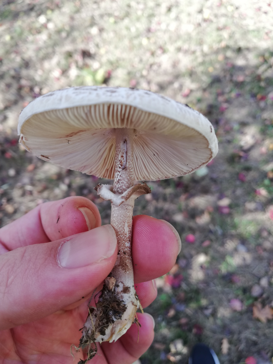 Habe hier am waldrand unter einem Apfelbaum diesen kleinen schirmling gefunden. Ring ist natürlich nicht verschiebbar, fleisch rötet leicht. Kenne mich mit schirmlingen nicht sonderlich gut aus und wollte fragen ob ich hier auf den seltenen, tödlichen, fleischbräunlichen schirmling (lepiota brunneoincarnata) gestoßen bin