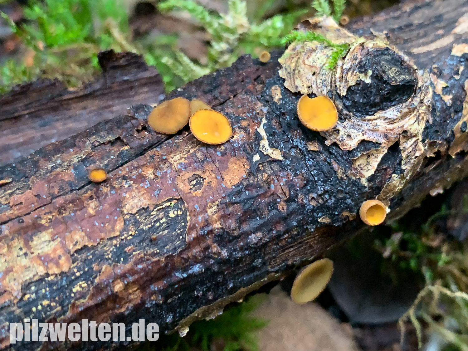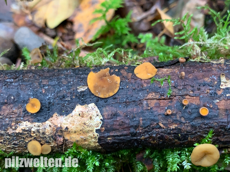 Kleine gelbe Becherlinge auf Totholz - ohne Mikro keine Chance?