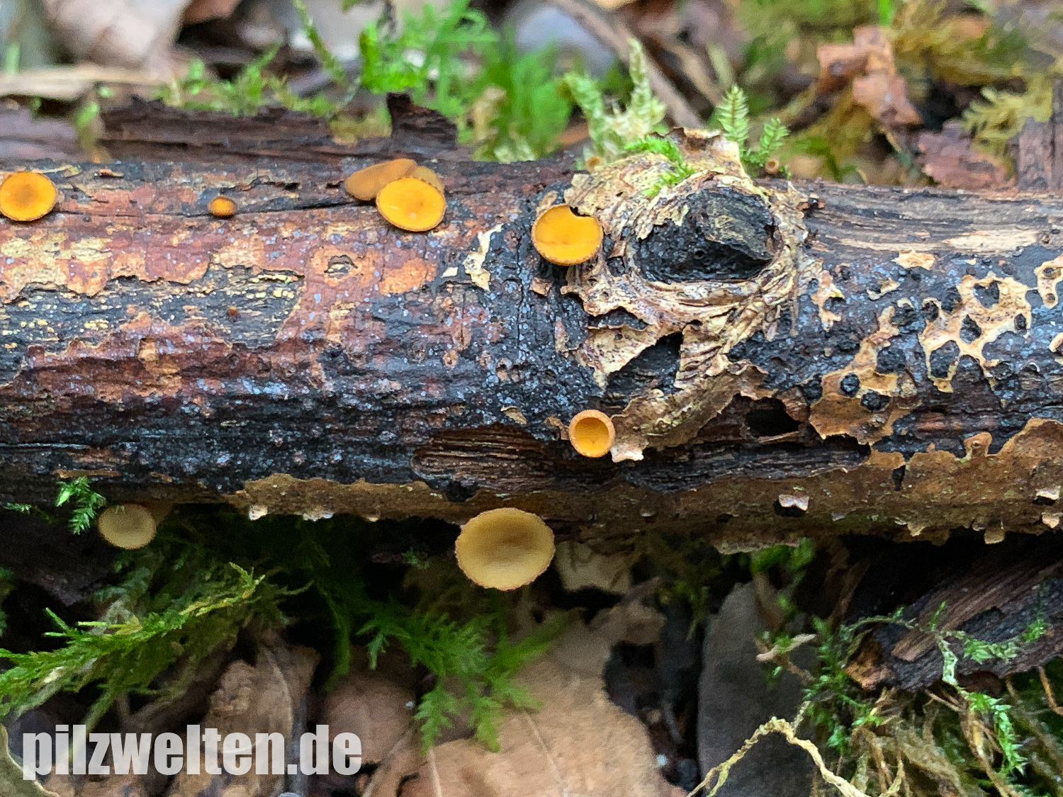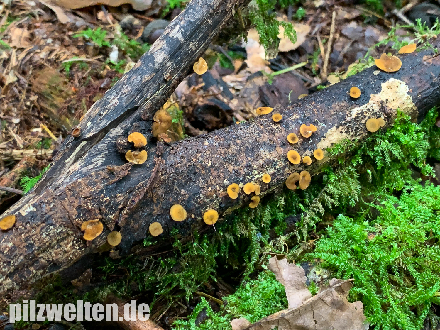 Kleine gelbe Becherlinge auf Totholz - ohne Mikro keine Chance?