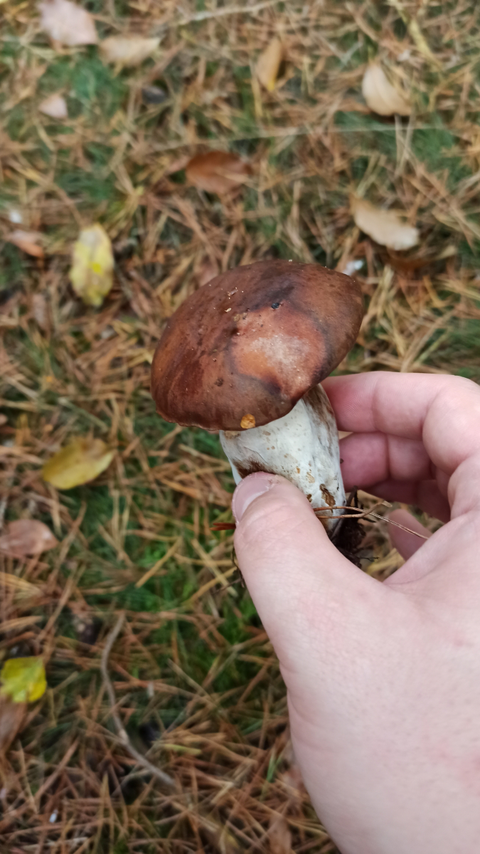 Moin, heute war ich erstmals in einem anderen Gebiet unterwegs, da Freunde von Steinpilz-Funden am Wochenende berichteten. Als ich dort im Nadelwald unterwegs war, dachte ich, ich hätte meinen ersten Steini gefunden. Im Endeffekt nur eine verrottete Marone, oder?