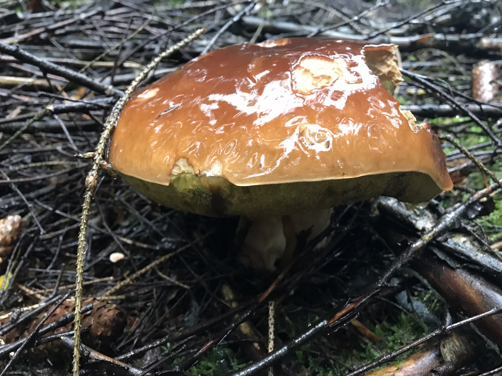 Heute waren es nur drei Steinpilze. Aber extrem lange Stiehle.