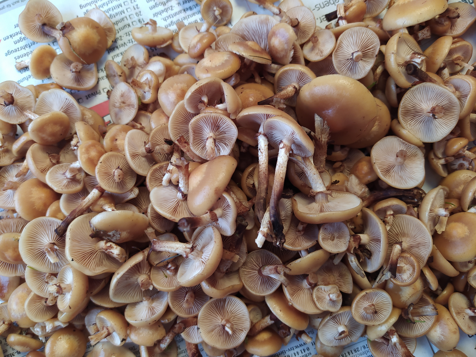 vielen Dank für die Antworten. Bei dem Pilzhaufen ist natürlich bei den meisten nichts zu erkennen. Aber sie sind alle von dem selben Baumstumpf und wuchsen (nur) dort in großen Büscheln. Alle hatten die vielzitierten Schüppchen. Apropos Schüppchen, ich mache mir daraus jetzt ein Süppchen