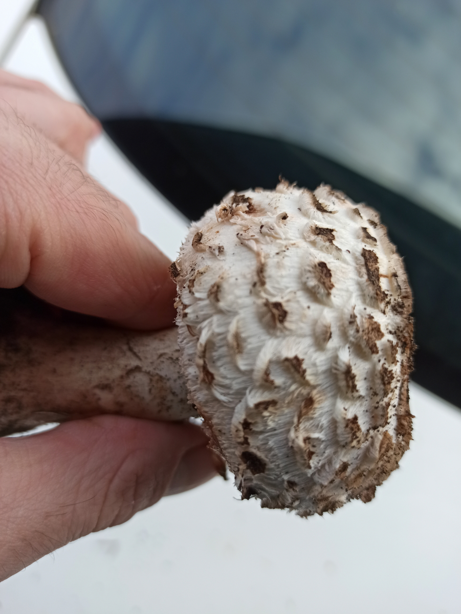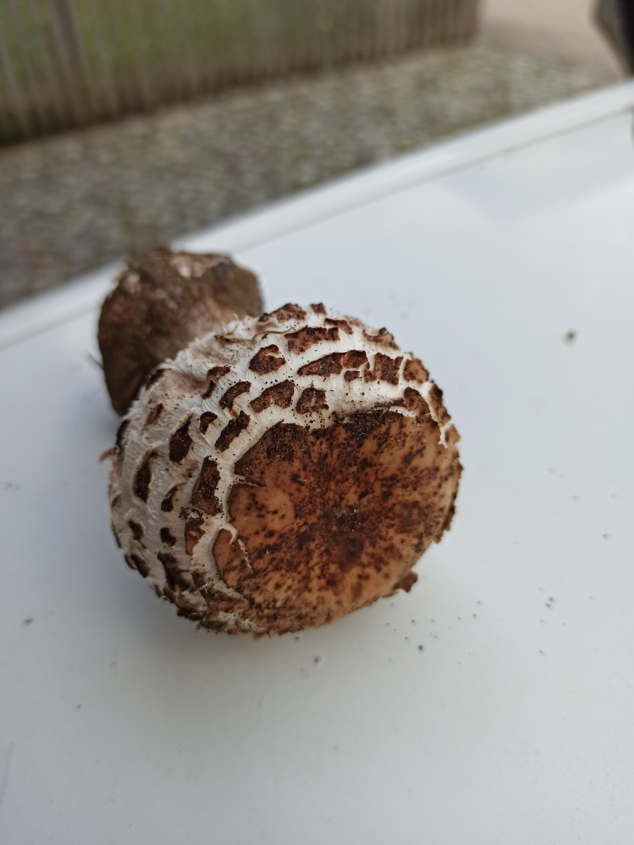Hallo! Habe einen Schirm Ling auf einem Ameisen Haufen entdeckt. Fichtenwald. Geht der noch als Safranschirmling durch? Roetet beim An kratzen. Vllcht sogar der CHLOROPHYLLUM BRUNNEUM, wegen der dicken Knolle?? Lg Wastl