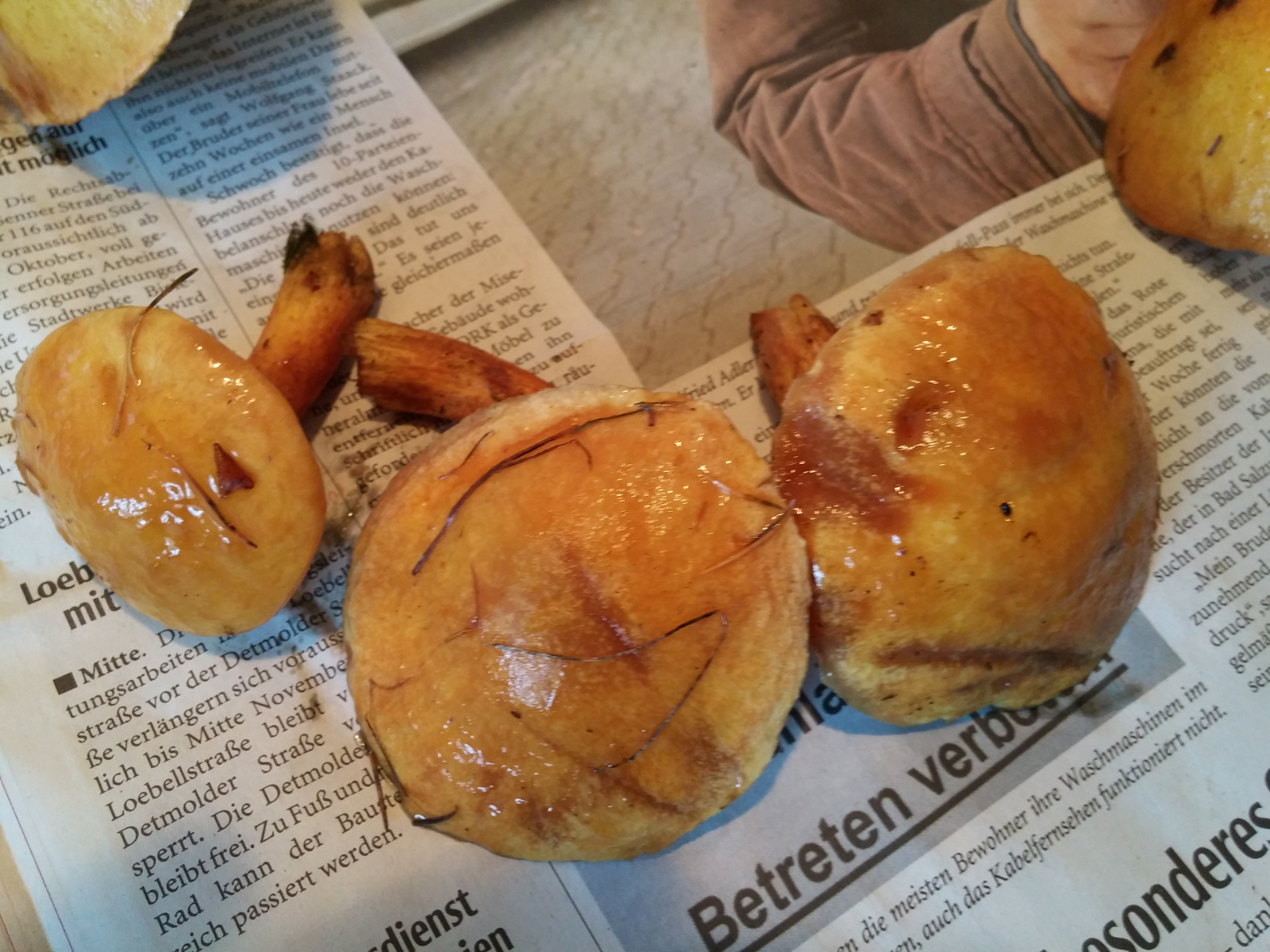 ich sehe, du hast dir jede Menge vermatschte Schmierröhrlinge in die Wohnung geschleppt, die du lieber im Wald hättest stehen lassen sollen. Daran wirst du keine Freue haben (falls du sie essen wolltest). Sandpilze sind das nicht.