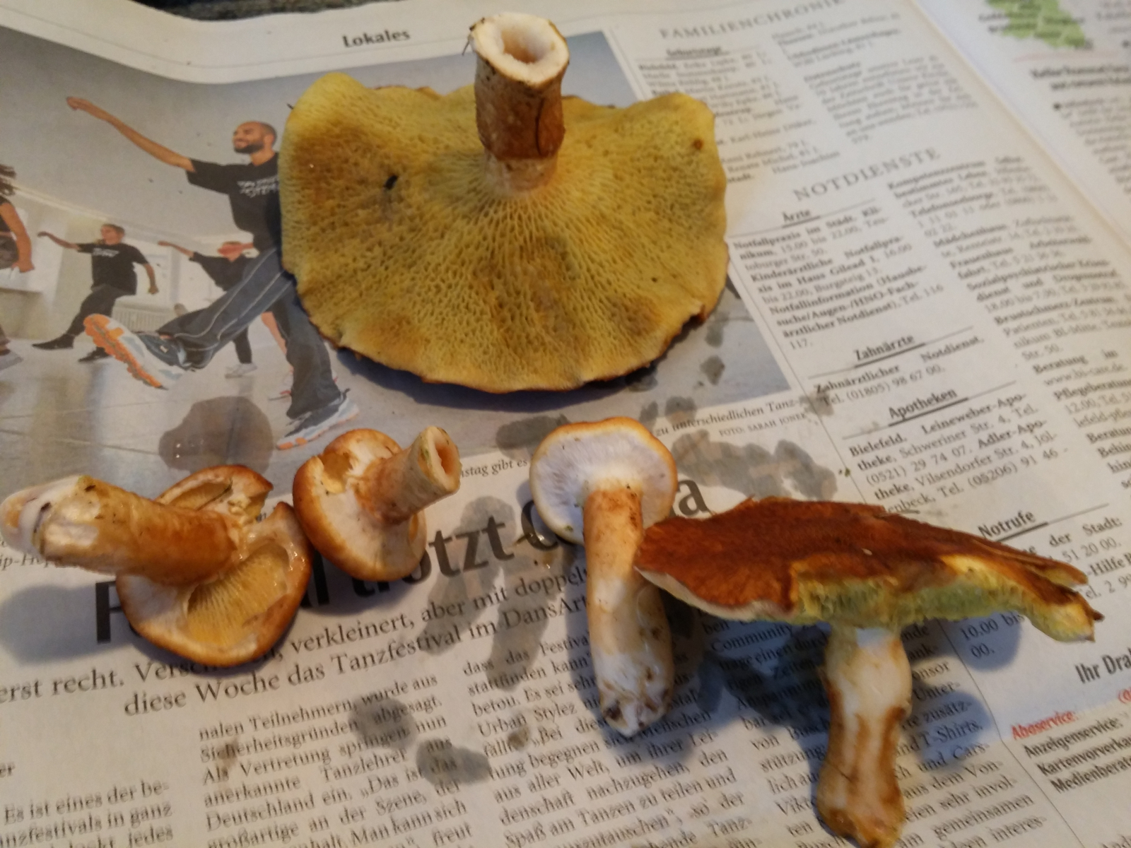 • Hallo, ich war heute im Wald Pilze suchen und habe nur welche gefunden die ich nicht kenne. Außer die gelben sehen für mich wie Sandpilze aus. Ich habe jeden Pilz oben und unten fotografiert.