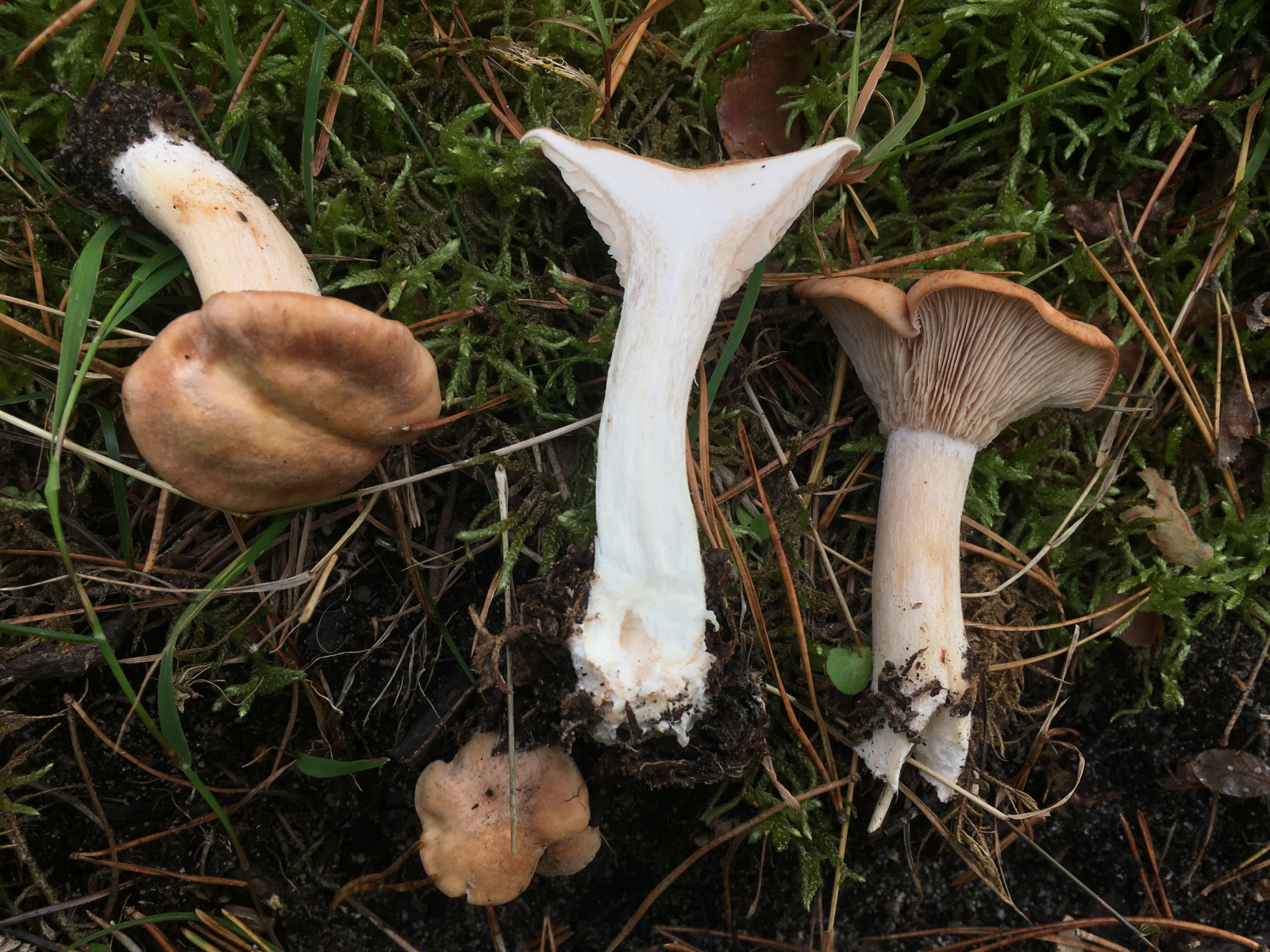 5) am Wegrand im Kiefernwald mit einigen Birken nun doch noch der würzige Tellerling (Rhodocybe gemina). Geruch würzig aber viel weniger als der "Maggipilz" oben