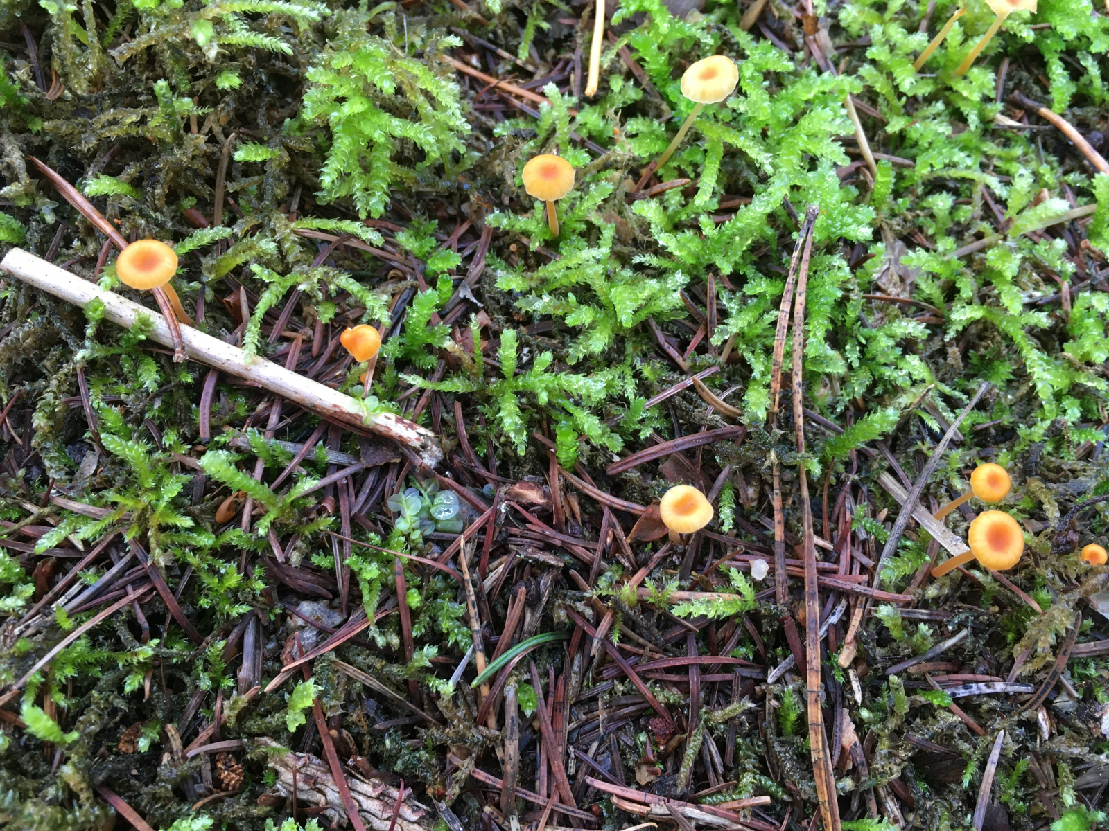 7) Orangeroter Heftnabeling (Rickenella fibula) in Mooskissen, kommt da noch was anderes in Frage?
