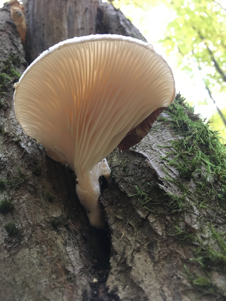 11) ebendort aus einer Buche entspringend: Berindeter Seitling (Pleurotus dryinus)?