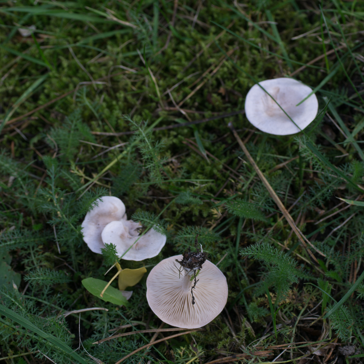 24. Pilzig riechende, rötende Champignons. Ich dachte erst an Agaricus bohusii, weil der hier öfters vorkommt, aber es könnte auch was aus der Waldchampignon-Ecke sein. Ich weiß es nicht.