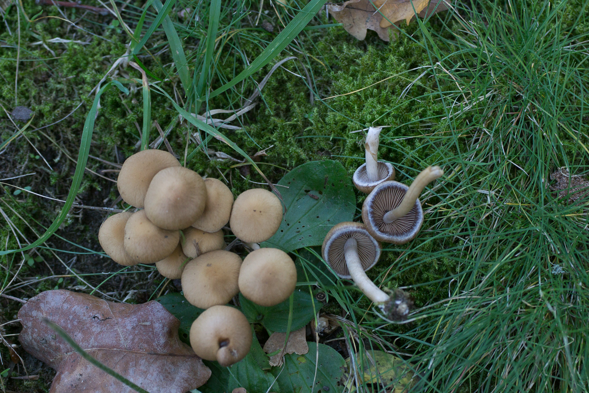 14. Hat jemand eine Idee zu dieser Psathyrella? Die haben alle diesen lustigen Kranz? Wässriger Mürbling glaube ich nicht, da auf dem Boden wachsend und farblich etwas anders. Auf einer Wiese zwischen überwiegend Buchen und Eichen. Geruch unbedeutend. Vermutlich aber nicht zu lösen?