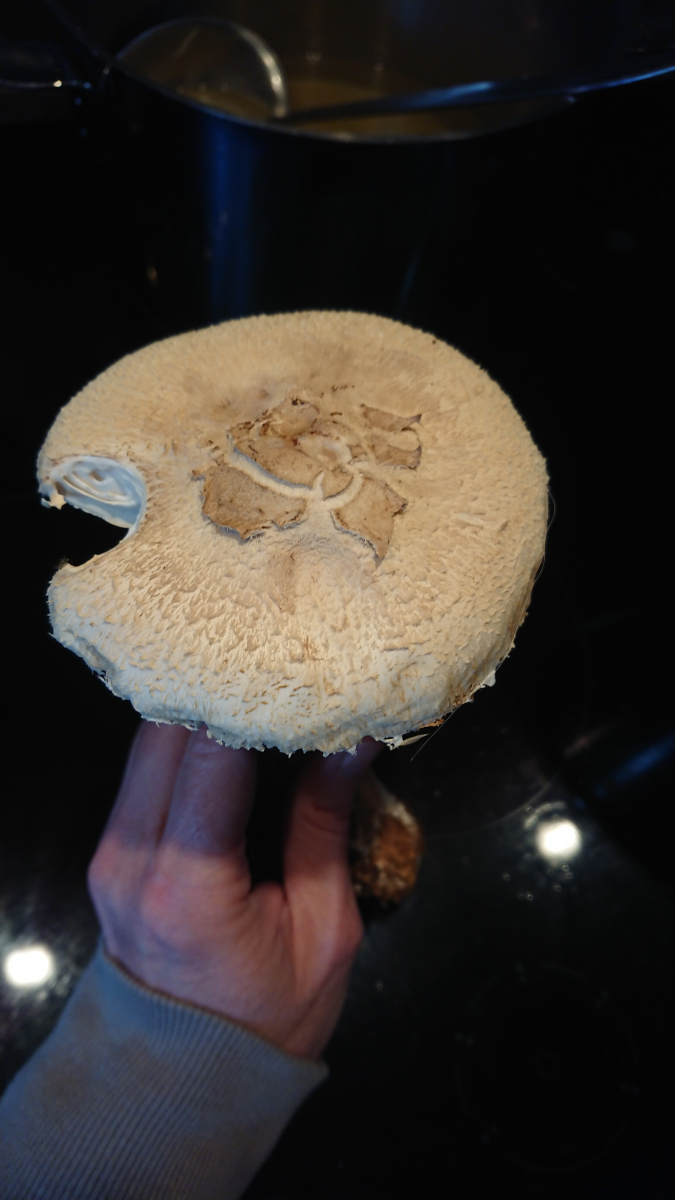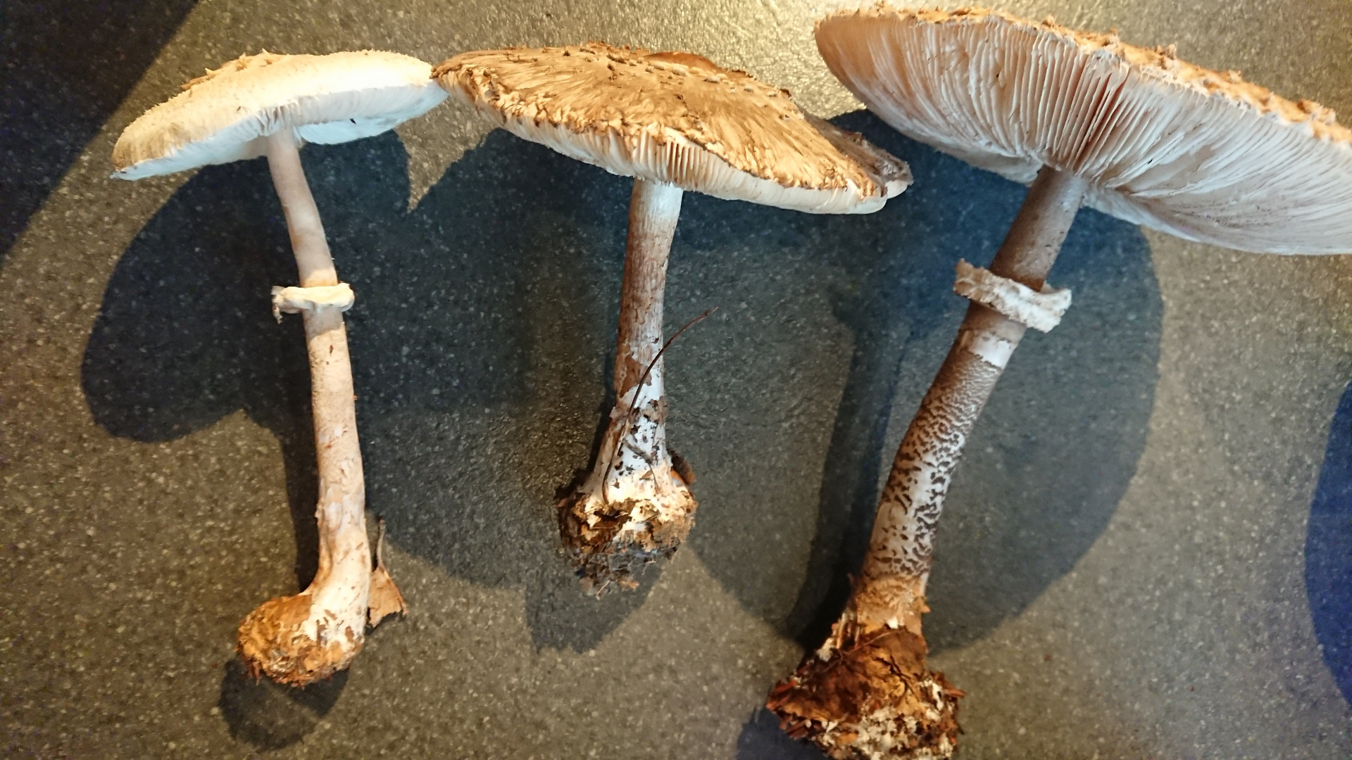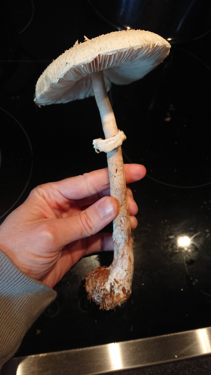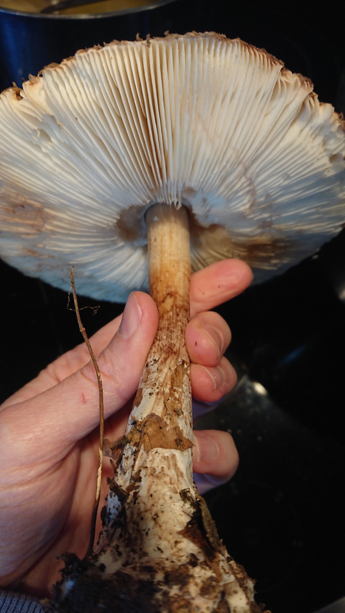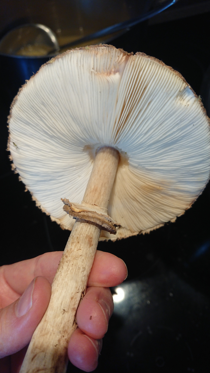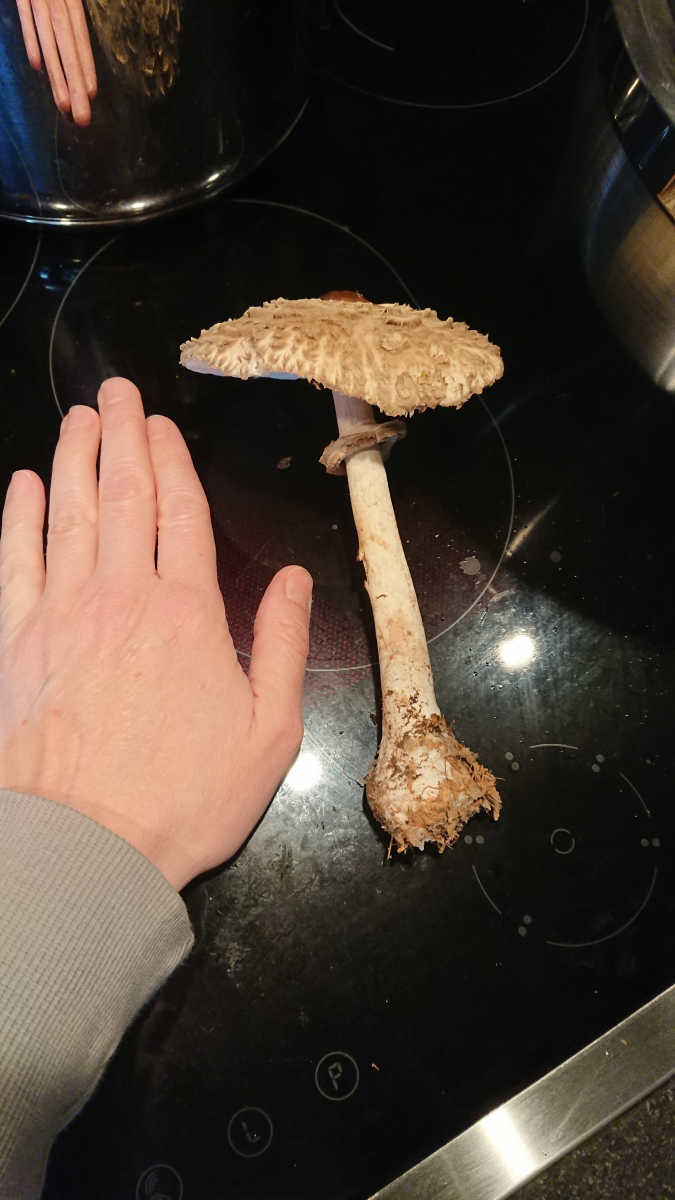 Sobald es keine eindeutigen Parasole mehr sind, also genattert am Stiel und nicht rötend, finde ich die Bestimmung relativ schwierig. Gibt es da giftige Kandidaten im Wald? Die giftigen, auf Kompost wachsenden Arten, sind mir bekannt, aber ist Fundort Wald ein sicheres Kriterium, und die auszuschließen?