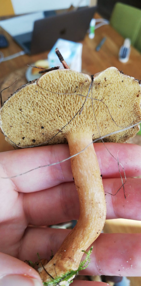 Nach schneller Recherche bin ich auf den Kuhröhrling gestoßen. Vielleicht könnt ihr unseren Verdacht bestätigen. Der Pilz hat mitunter folgende Eigenschaften: