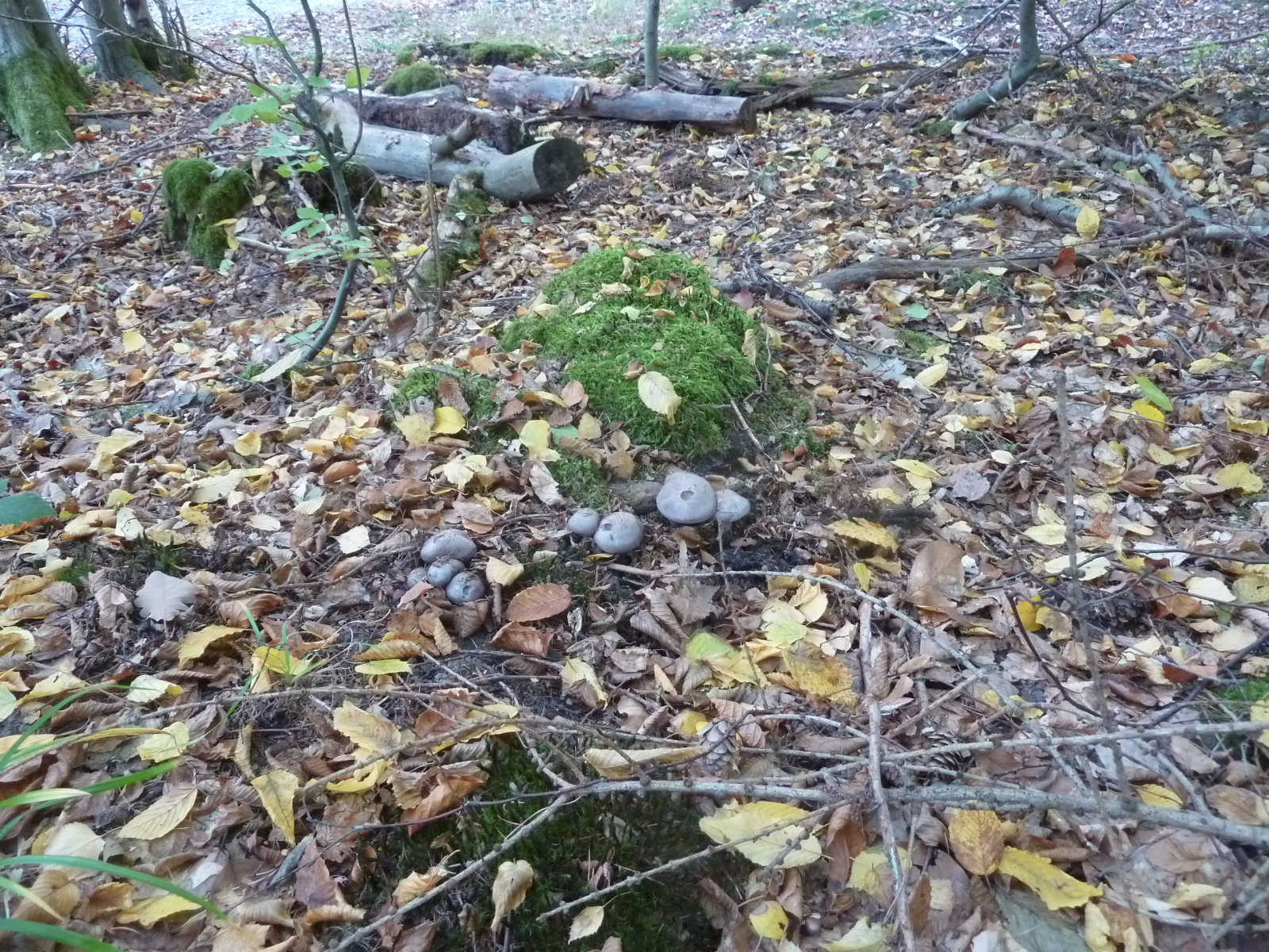 Eine unbekannte Cortinarie mit - schon jung - sehr dunklen Lamellen hat heute meine Neugier geweckt. Auch das fast büschelige Wachstum finde ich bemerkenswert. Da es sonst nicht allzu viele Funde gab, habe ich die Exemplare für einen Bestimmungsversuch mitgenommen.