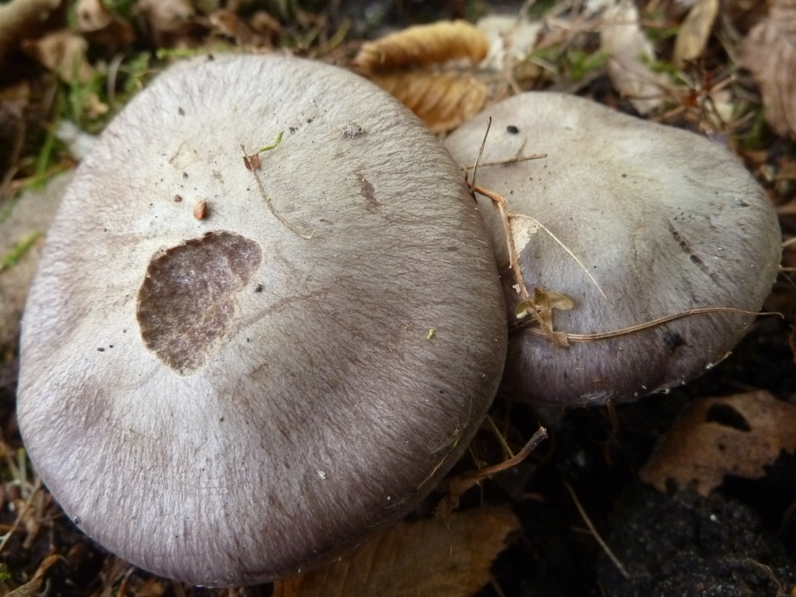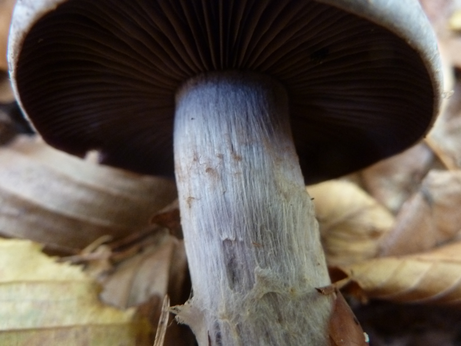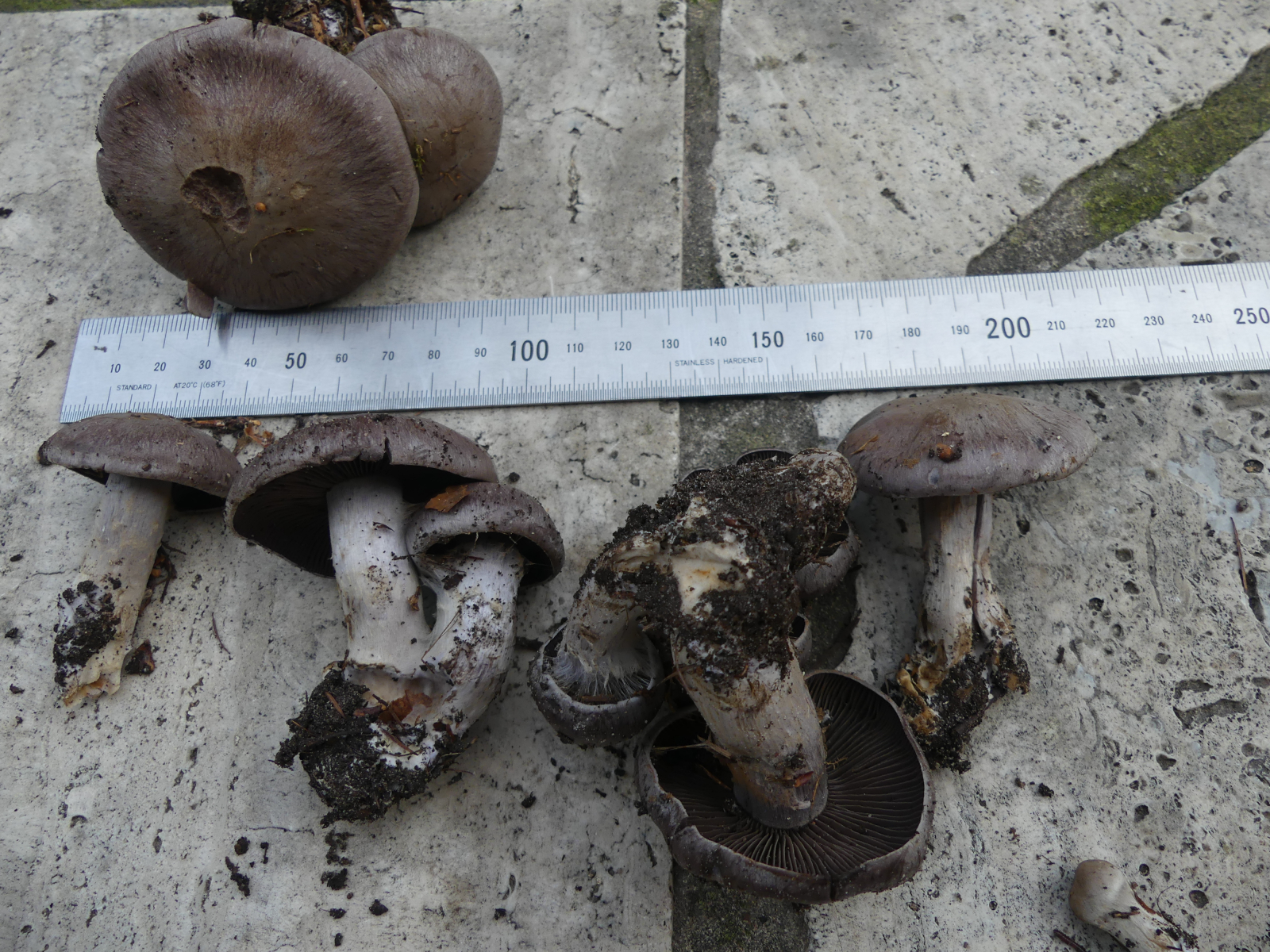 Eine unbekannte Cortinarie mit - schon jung - sehr dunklen Lamellen hat heute meine Neugier geweckt. Auch das fast büschelige Wachstum finde ich bemerkenswert. Da es sonst nicht allzu viele Funde gab, habe ich die Exemplare für einen Bestimmungsversuch mitgenommen.
