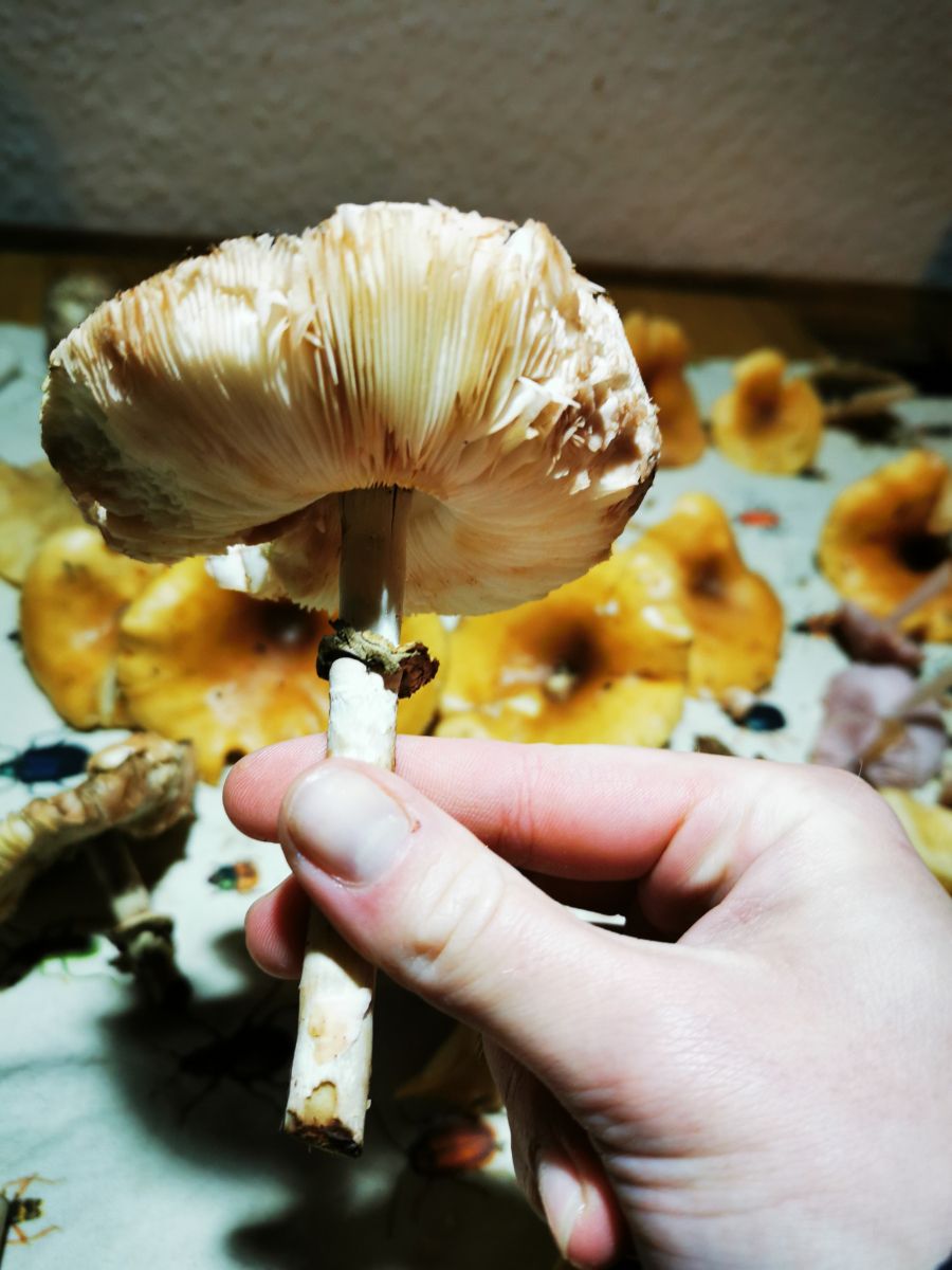 . Mach doch bitte Fotos bei Tageslicht, am besten vor Ort und erzähle etwas über den Pilz. Fotos am besten vom ganzen Pilz mit Querschnitt. Lies doch bitte hier einmal nach: