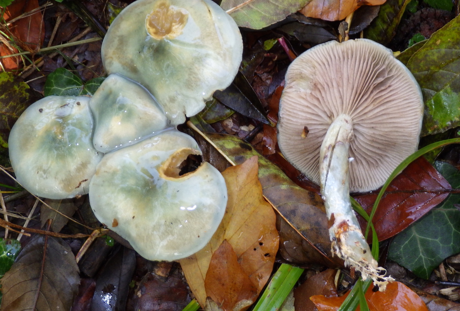 3) Grünspanträuschlinge Stropharia aeruginosa, alte Pilze