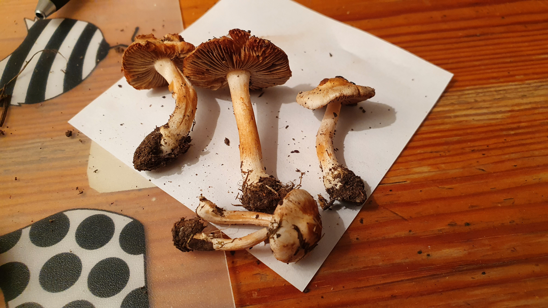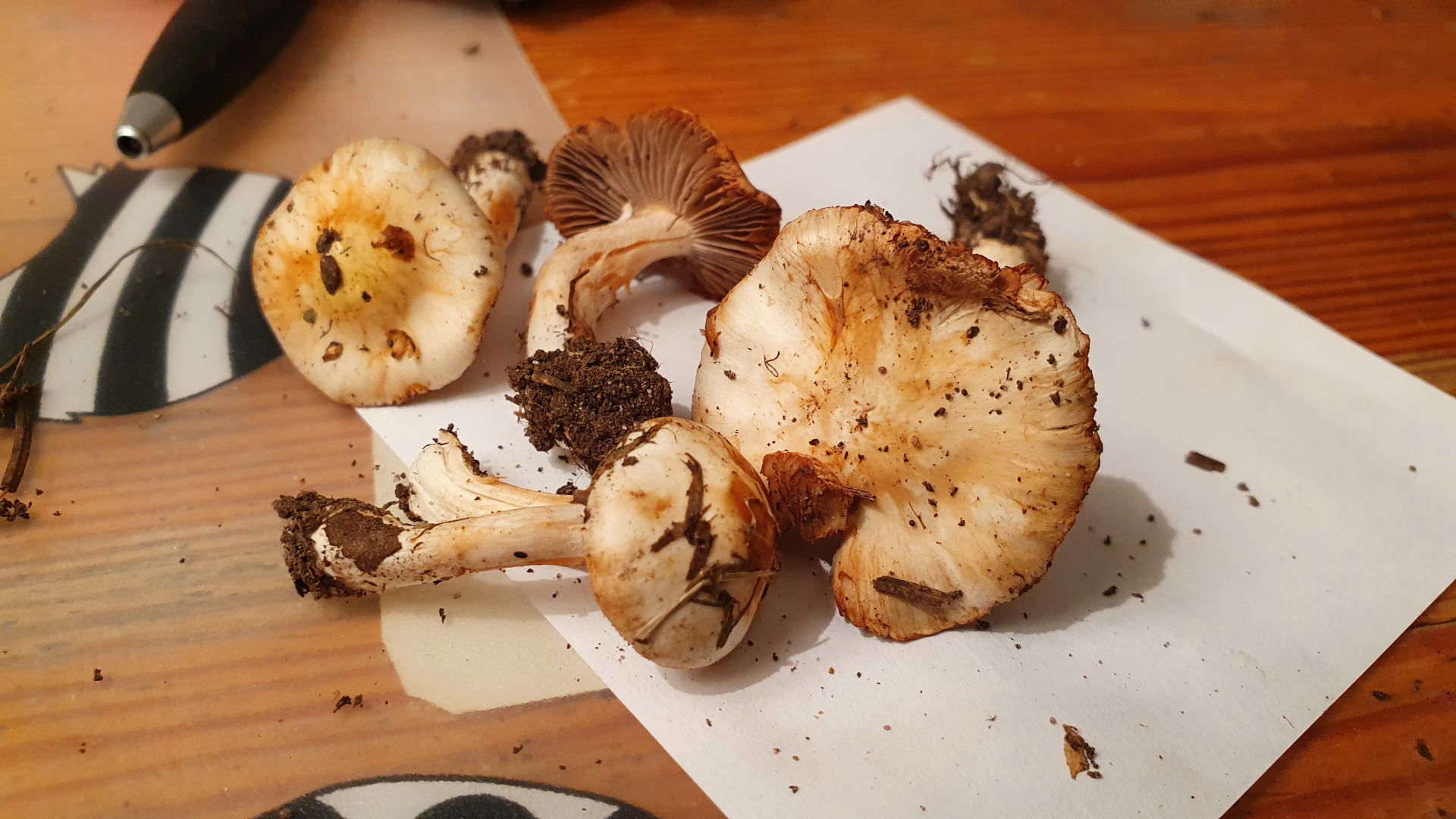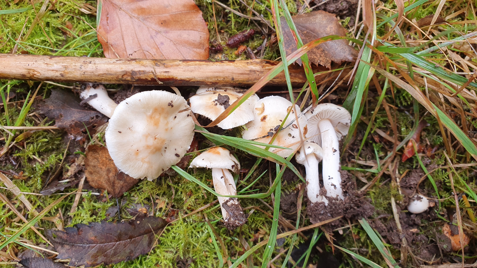 ich frage mich gerade, wie viele komplett weiße Risspilze es gibt, die orange-fleckig werden. Habe leider keine Literatur zu dieser Gattung. Geruch spermatisch. Fundort Nordschwarzwald, feuchter Waldrand. Kommt noch etwas anderes als Inocybe whitei in Frage?