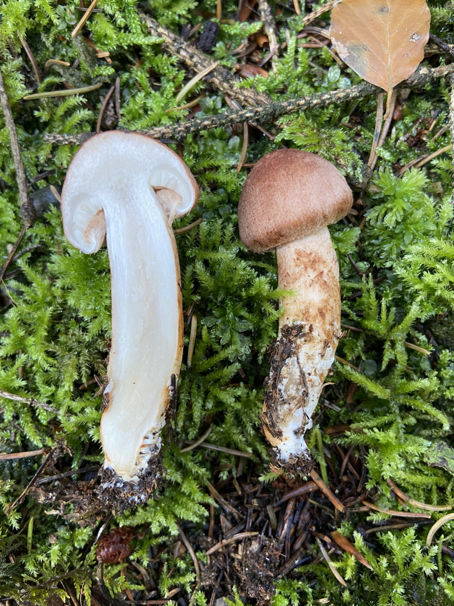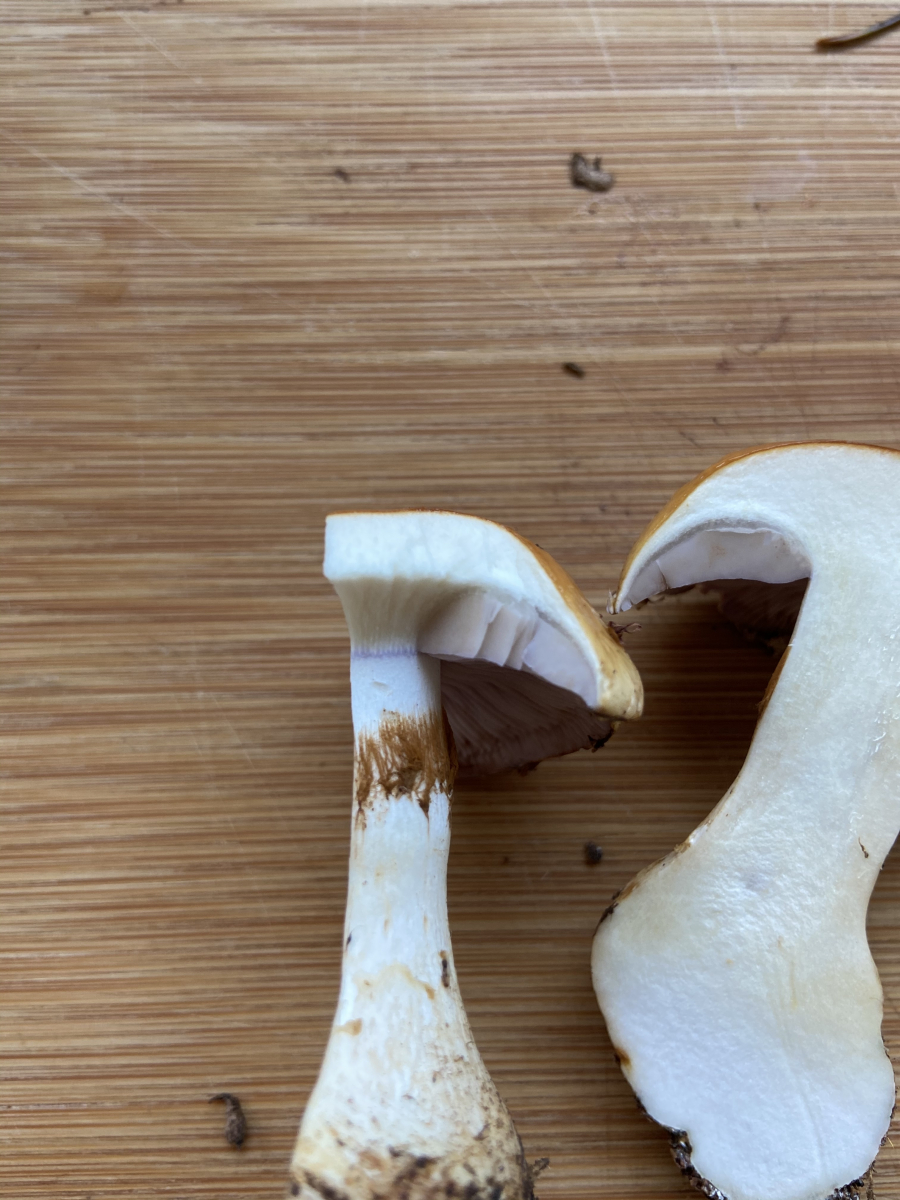 5. halte ich für Cortinarius varius auch, wenn die Farbe der Lamellen nicht ganz überzeugend lila ist aber gerade auch nach Abziehen der Lamellen sieht man die violette Linie am Stiel (siehe 2. Foto).