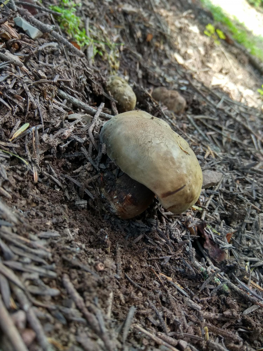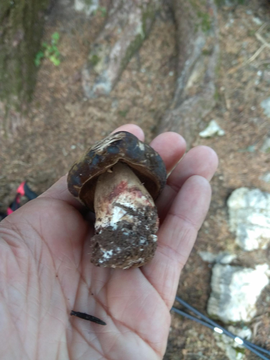 15-16. Dort gabe es tatsächlich ein paar Pilze. Dies hielt ich für einen düsteren Röhrling. Passte alles, bis auf den extrem würzigen leckeren Geruch und Geschmack.