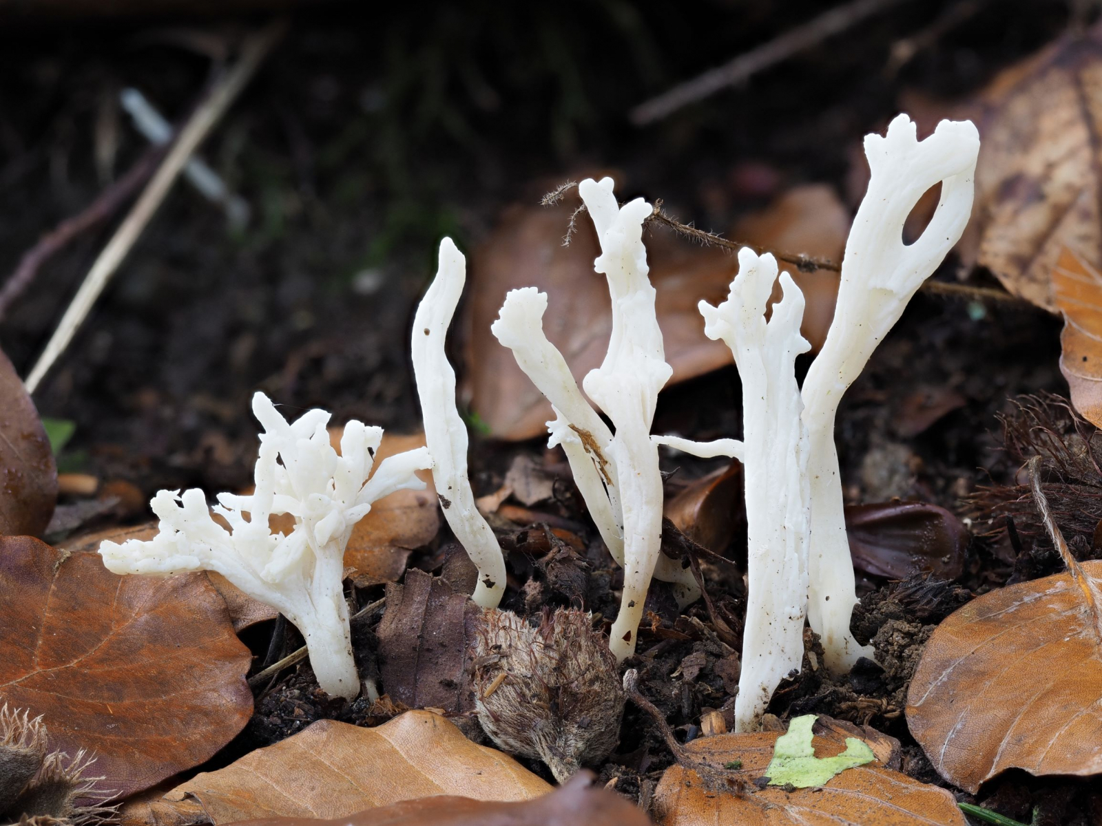 Wir waren heute im oberen Erzgebirge unterwegs und sehr von einer über mehrere Quadratmeter in einem Buchenwald verteilten Ansammlung von Korallenpilzen angetan, die m.M. Runzelige Korallen sind.