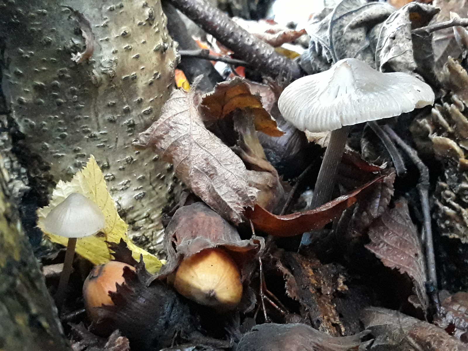 2 in einer großen haselnussstaude vermutlich der rillstielige helmling.
