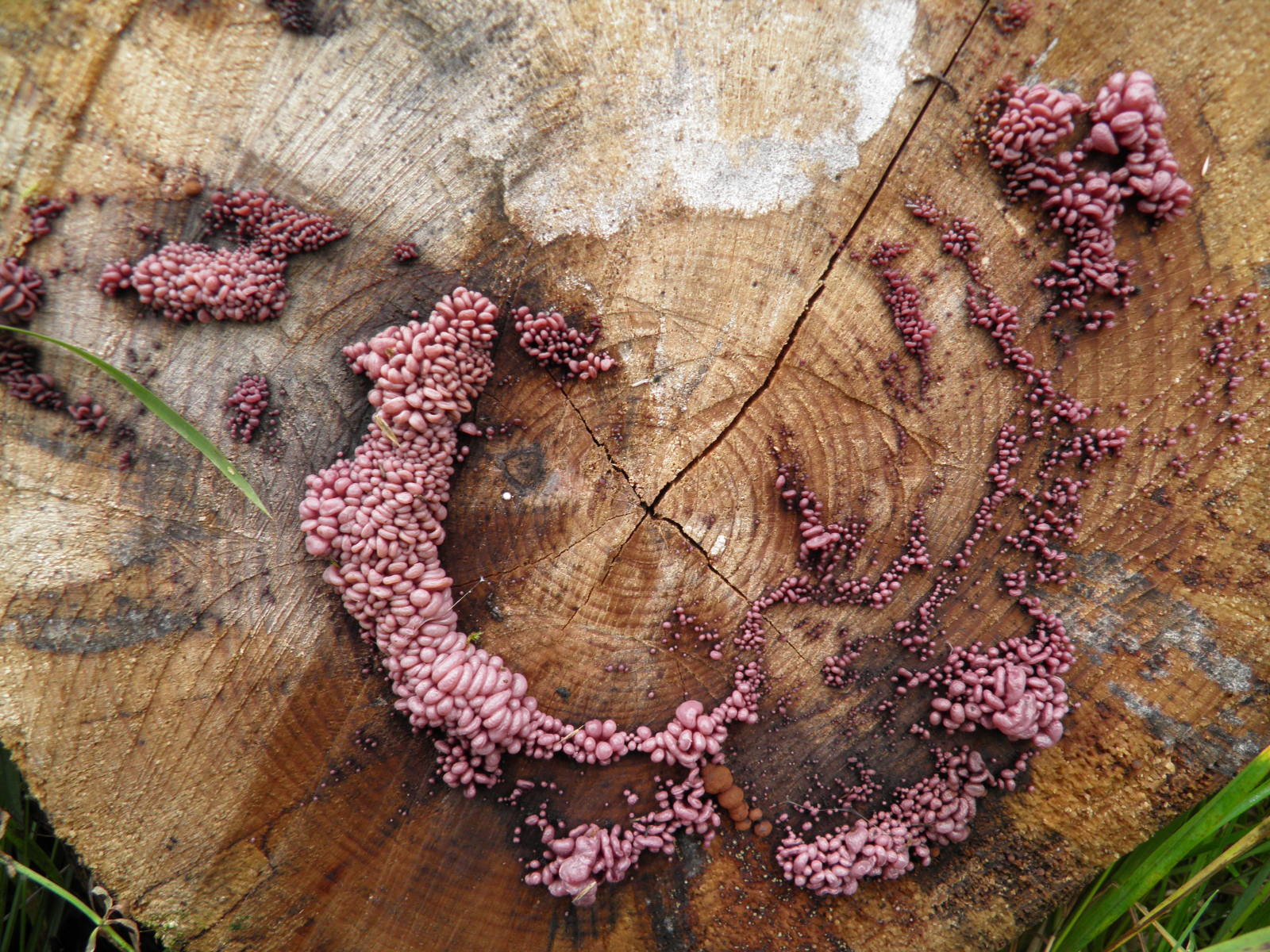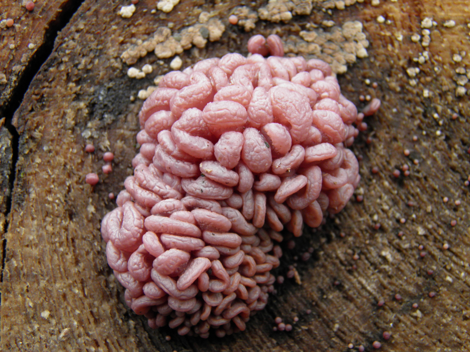 19 an der schnittfläche von buchenstämmen vermutlich die nebenfruchtform des fleischroten gallertbecher