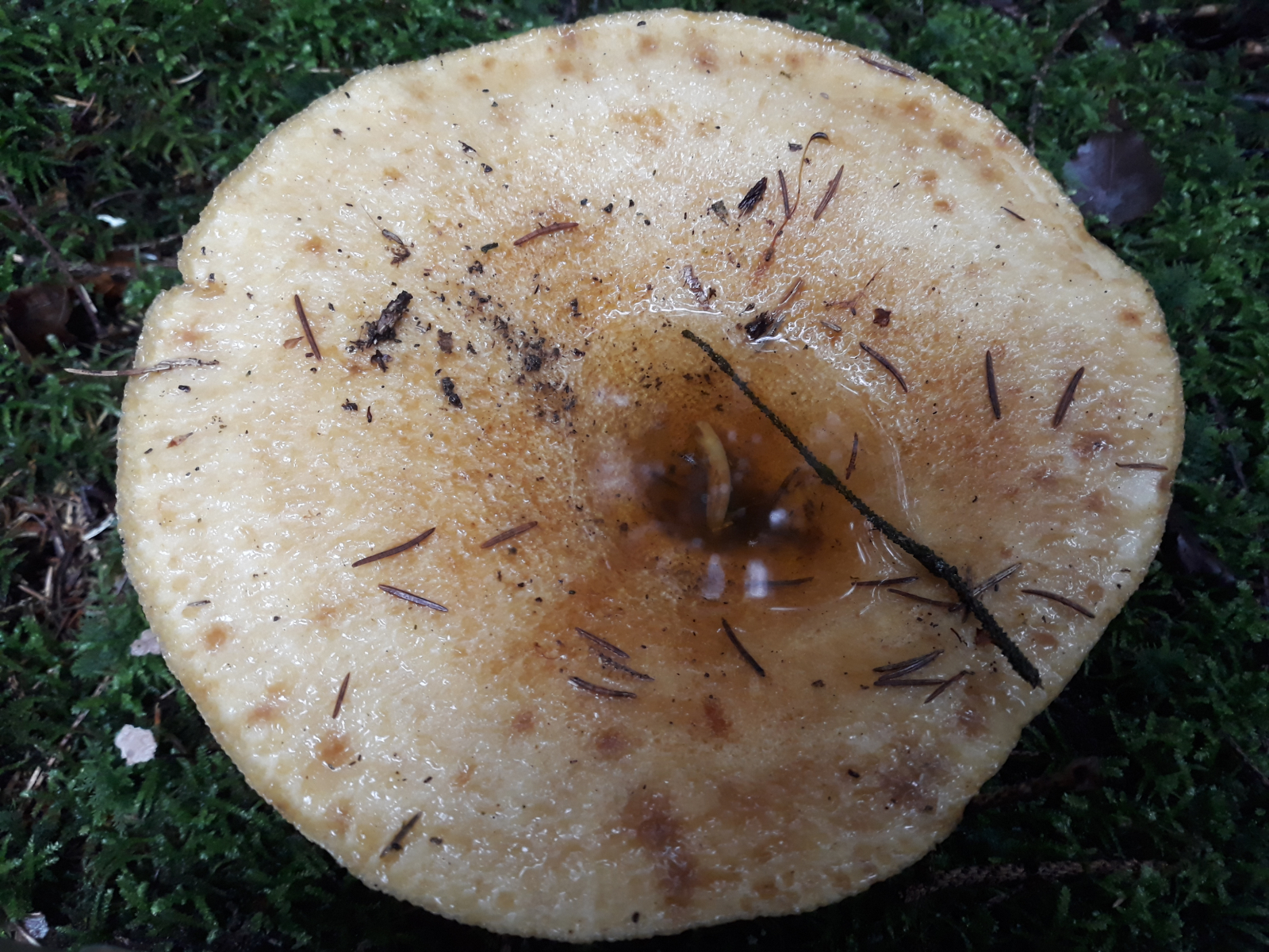 14 im fichtenwald "die todesfalle" grubiger milchling. ist doch glatt ein kleiner schnegel drinnen ertrunken..