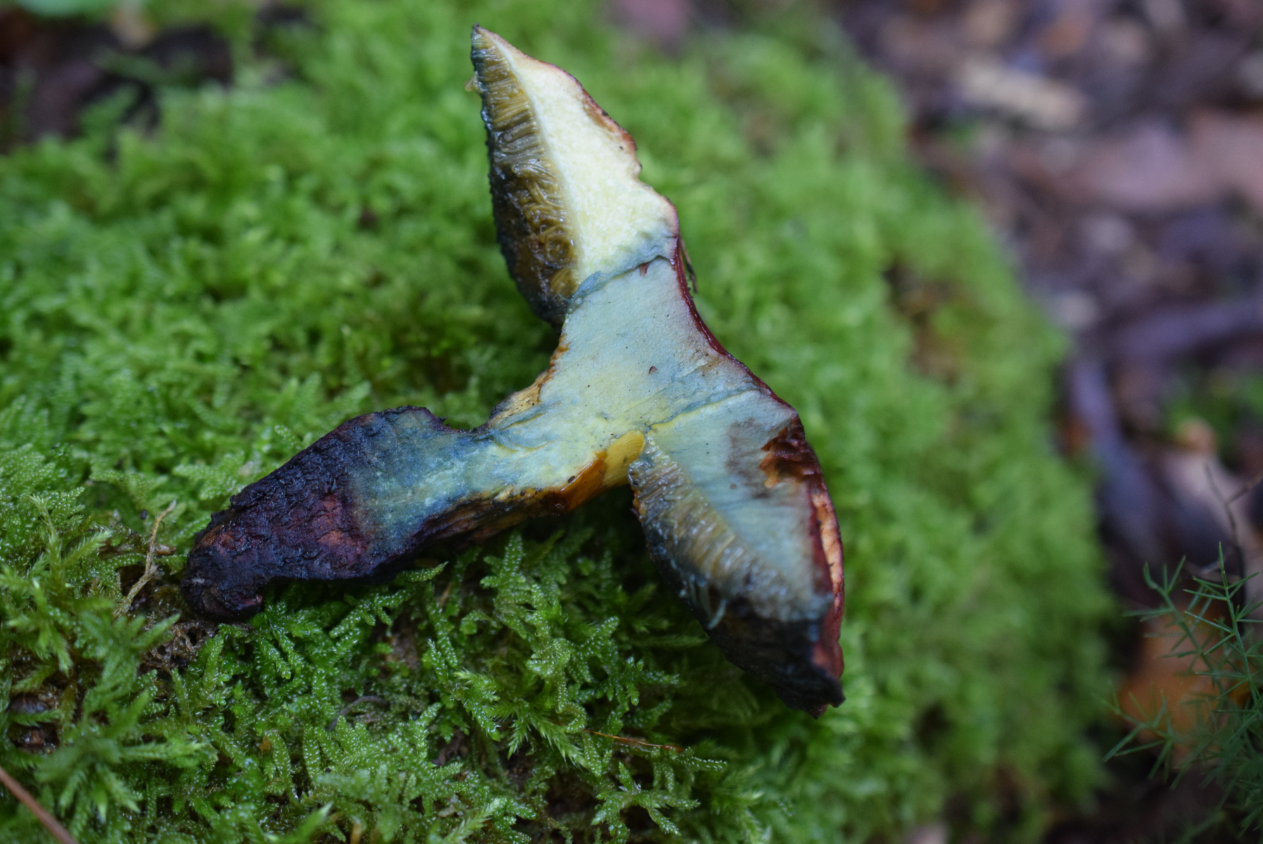 In der obersten Abbildung siehst du die rote Stielbasis. Was spricht denn gegen Cyanoboletus flavosanguineus?