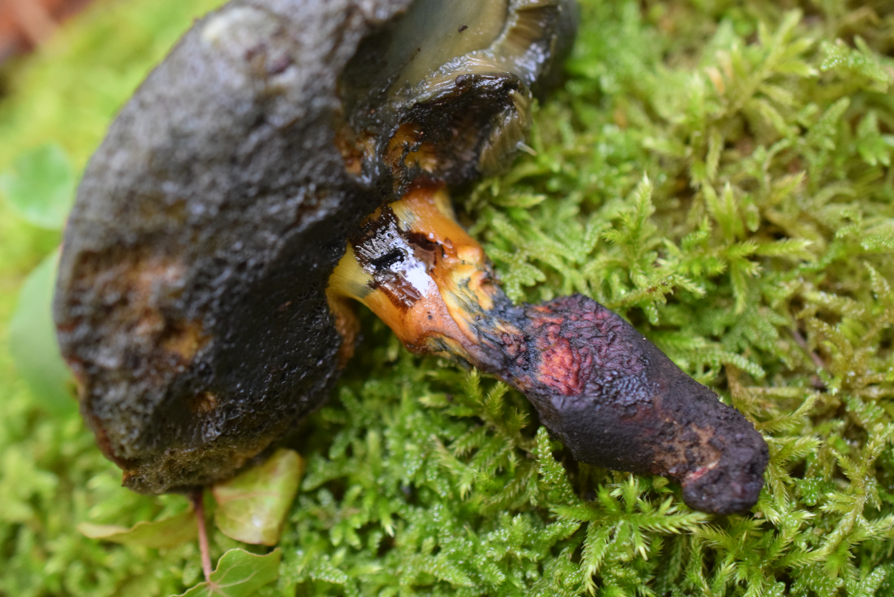 Bei älteren Fruchtkörpern kann das durchaus passieren. Müsste Cyanoboletus flavosanguineus nicht Gelb- und oder Rottöne auf dem Hut haben?