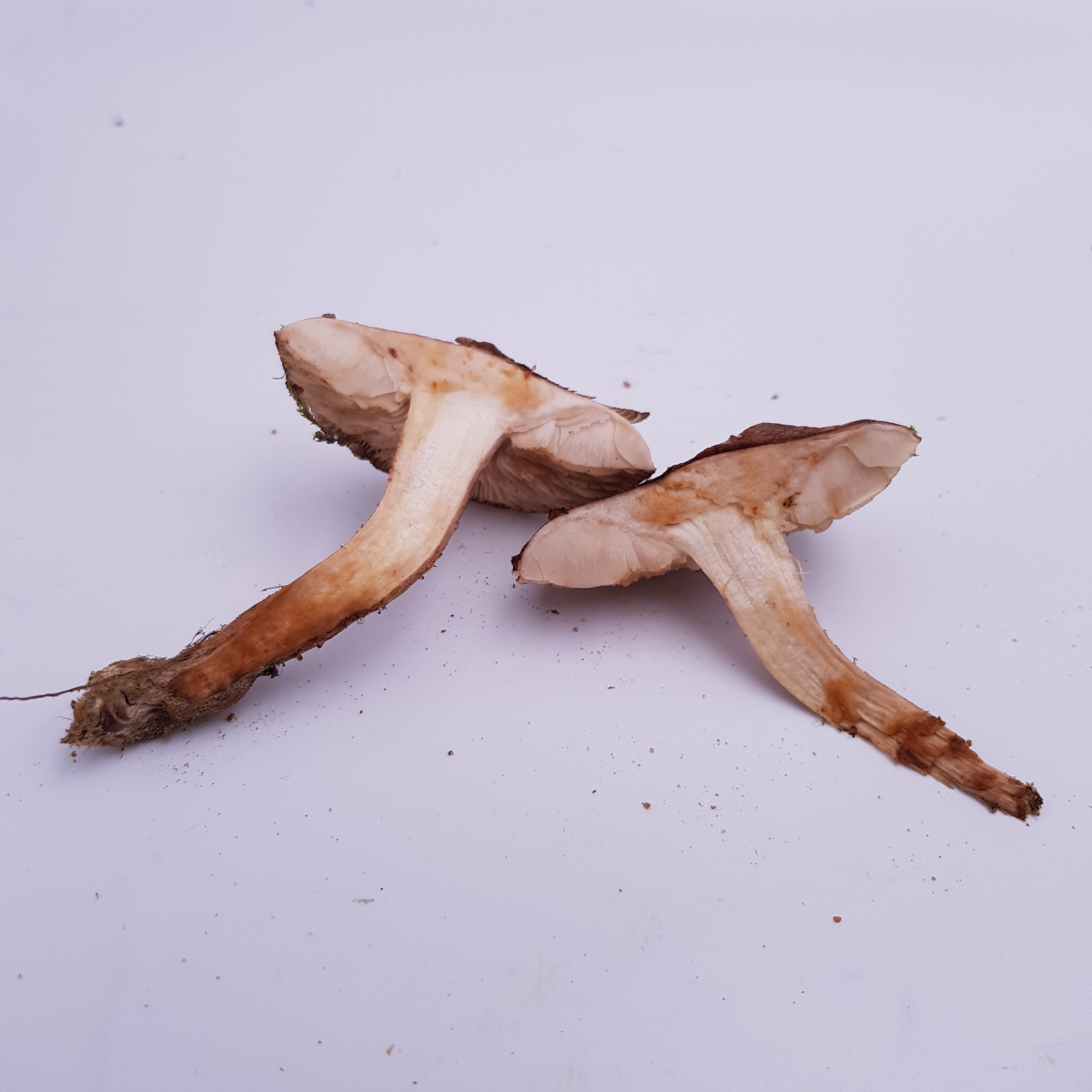 das Habitat passt übrigens zu beiden Arten. Das was du zeigst, ist eine Art aus dem T. albobrunneum-Aggregat. Geruch sicher stark mehlig, Geschmack bitter oder mild oder irgendwo dazwischen. Wir versuchen seit einiger Zeit, daraus schlau zu werden. Siehe auch DGfM-Forum: Ritterlingsprojekt. Du kannst den Fund also erstmal unter T. albobrunneum s.l. ablegen.