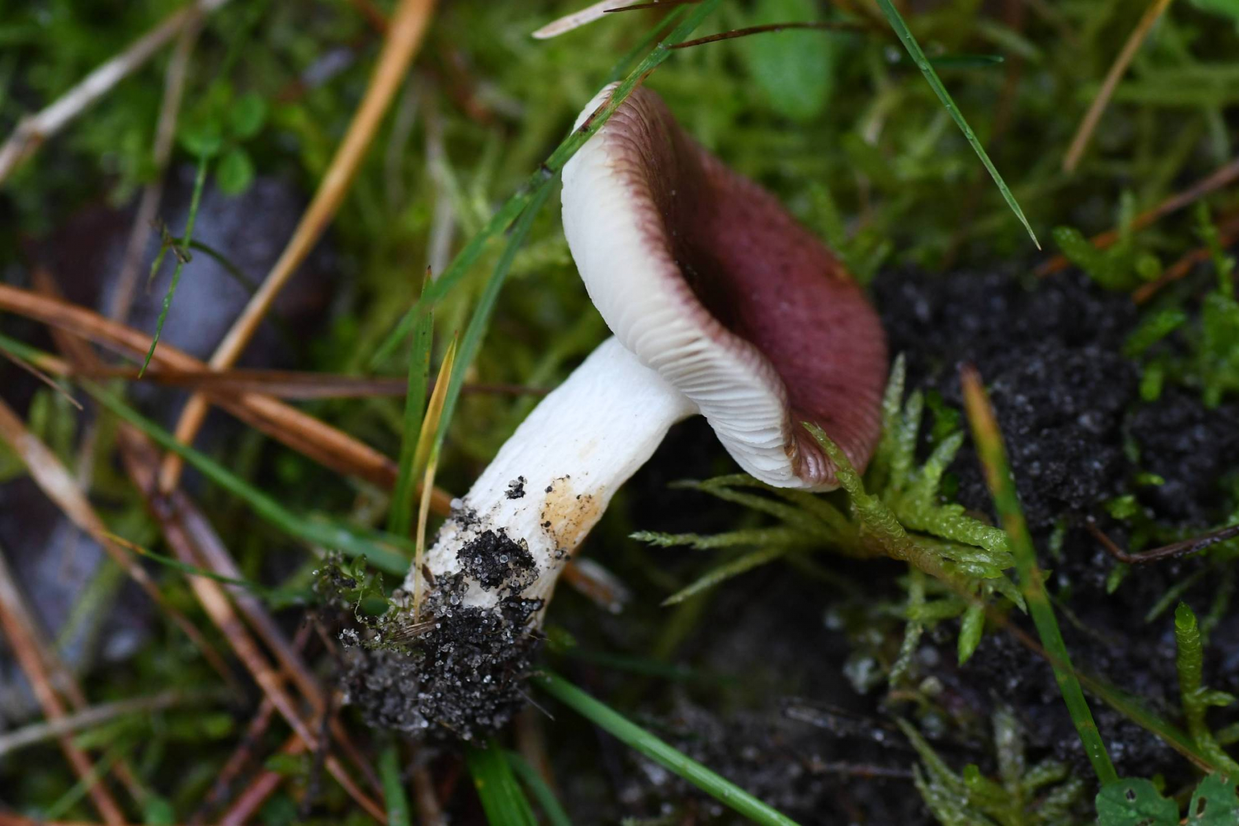 Hut: in der MItte dunkel violettrot, außen heller und stark gerieft