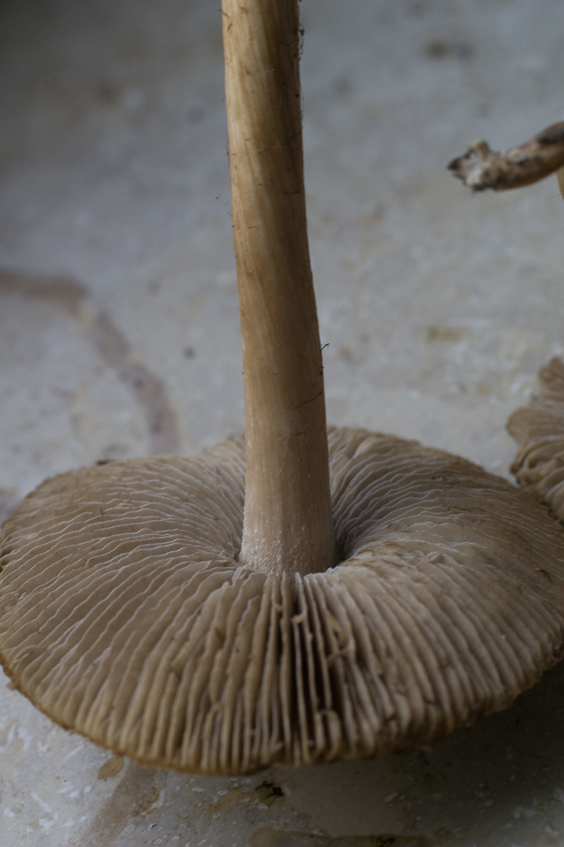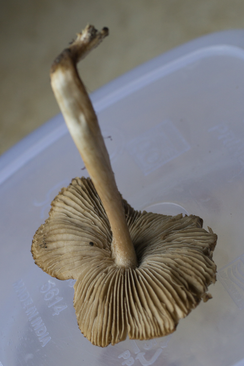 Er stand am Wegrand in einem Auwald aus Laubbäumen. Die Basis ist knollig und er riecht nicht spermatisch. Der Pilz ist ziemlich groß, ca. 12cm und 6cm Hutdurchmesser.