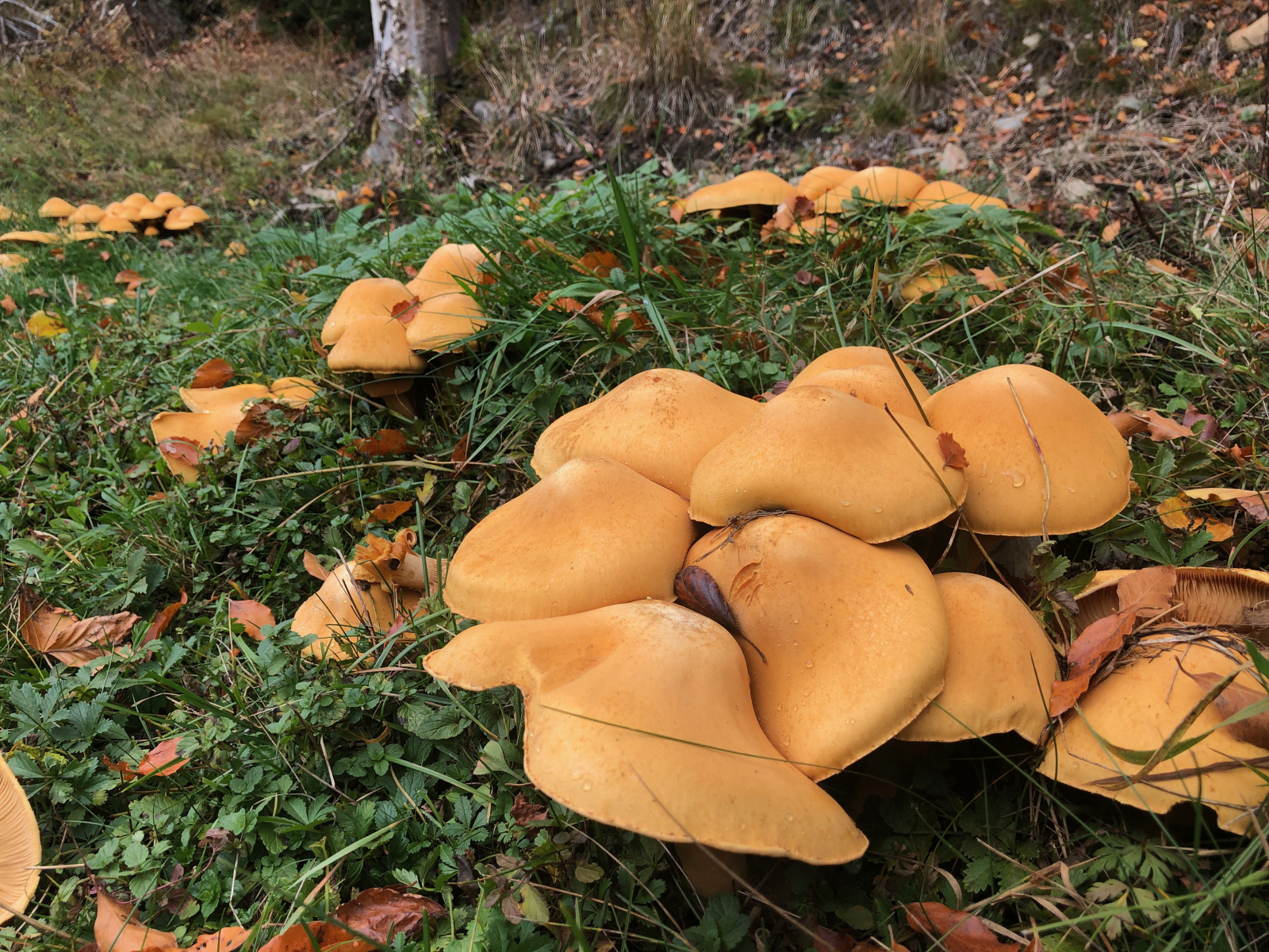 Vor kurzem brachte jemand einen Pilz dieser Art zur Beratung mit. Dank JanMV konnte ich ihn sicher bestimmen. Ich bekam vom Finder einen Tipp, wo ich ihn finden könne. Und natürlich hab ich mich auf den Weg gemacht und die beeindruckenden Exemplare entdeckt. Zu übersehen ist dieser Pilz ja nicht. Die größeren Hüte brachten es locker auf 20 cm Hutdurchmesser, obwohl sie noch nicht voll aufgeschirmt waren.