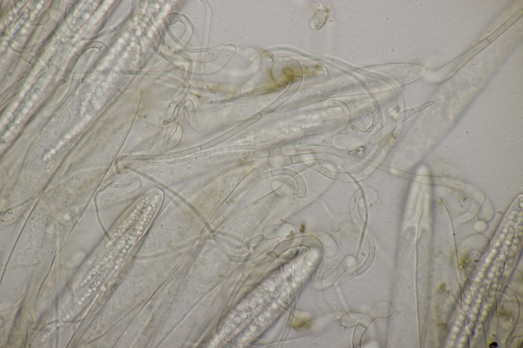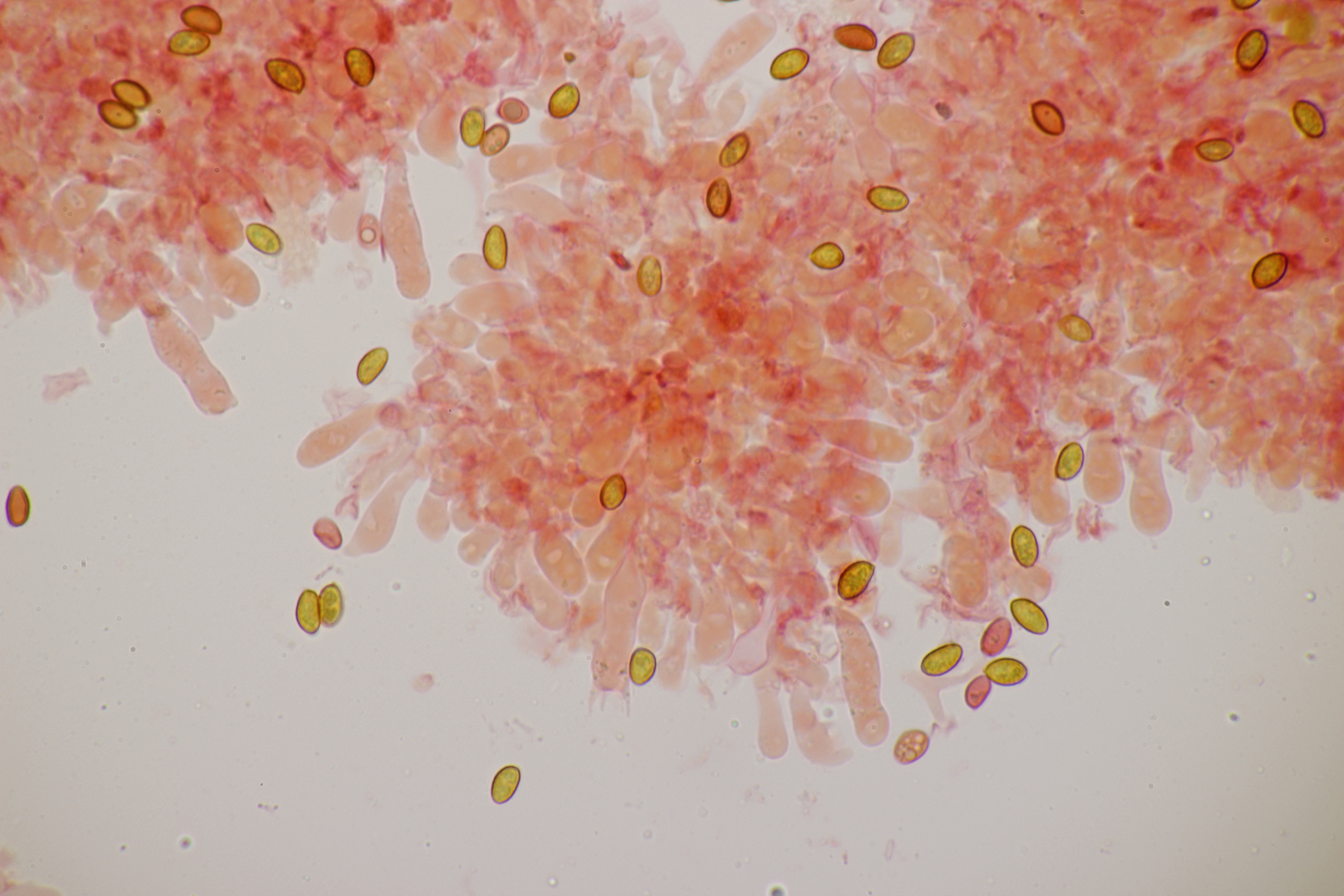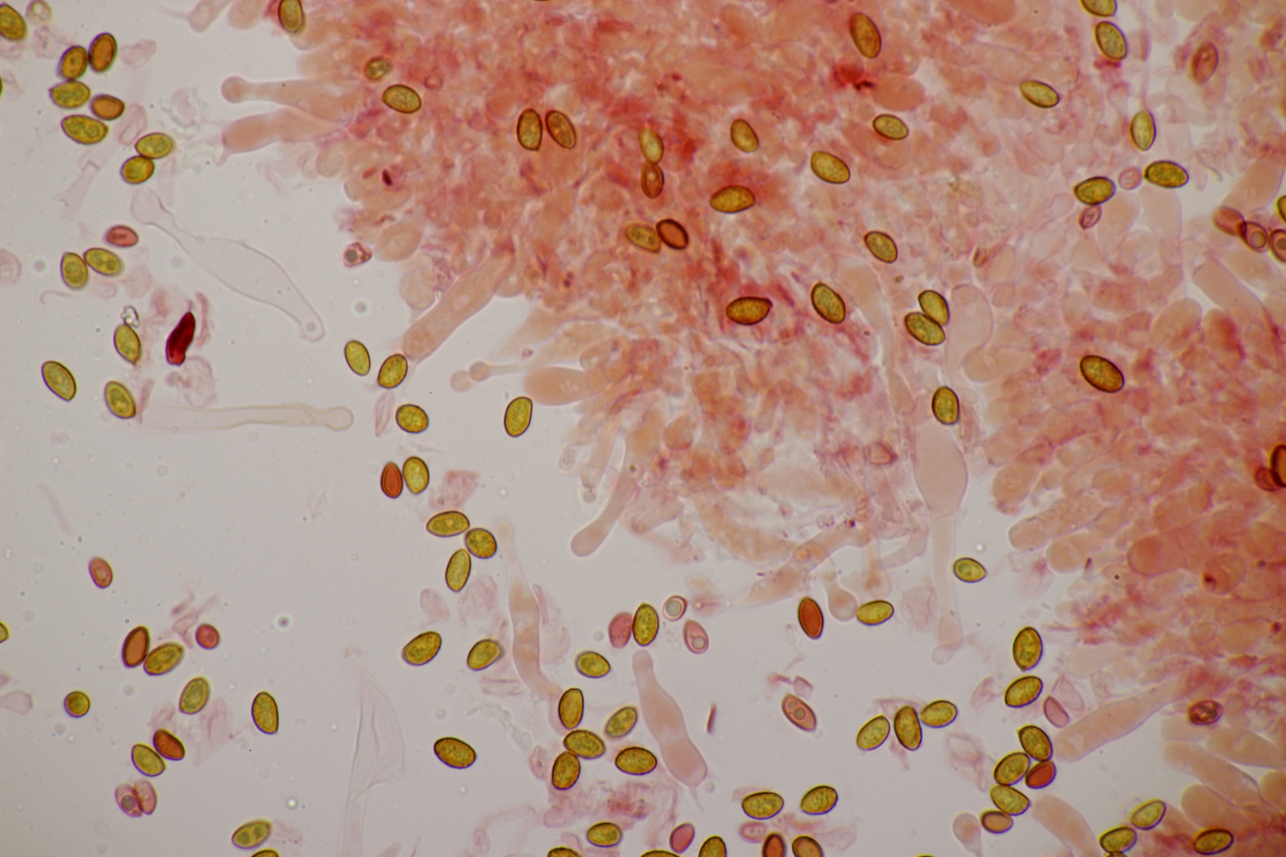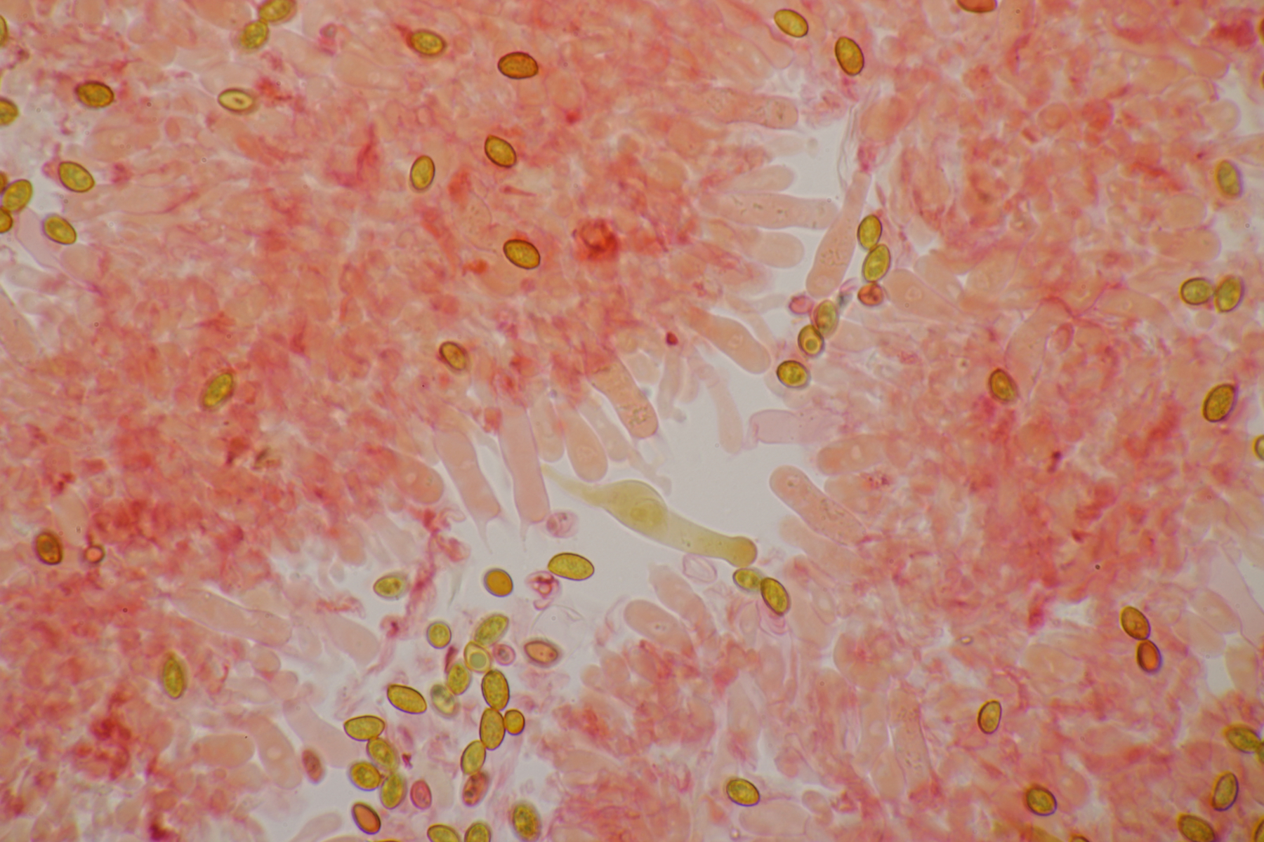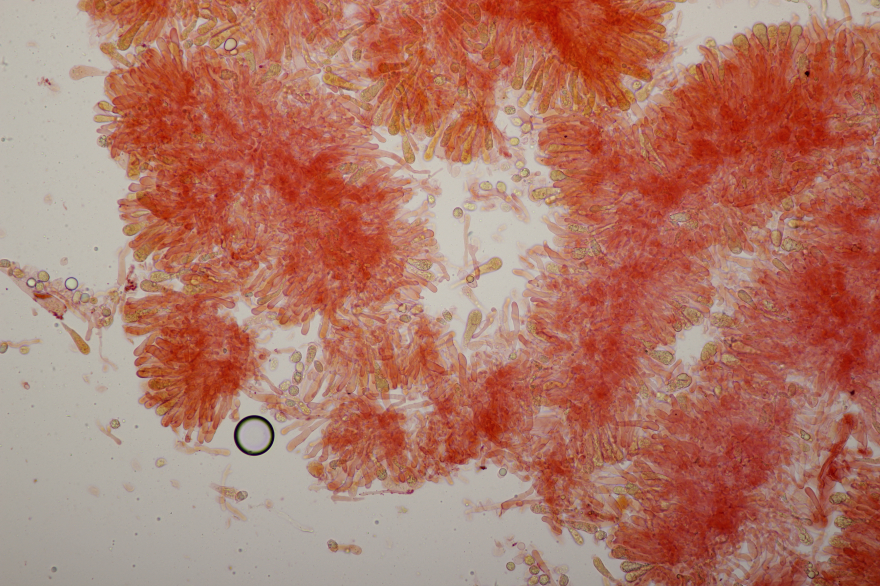 11. Die Sporen sind zwar mit (8.8+-0.6) µm x (5.4+-0.4) µm, Q=1.6+-0.1 bzw. (7.8-9.8) µm x (4.8-6.2) µm, Q=1.4-1.8 etwas klein, aber mit den Basidien mit den großen Ösen fällt mir außer Clavaria falcata nichts anderes ein.