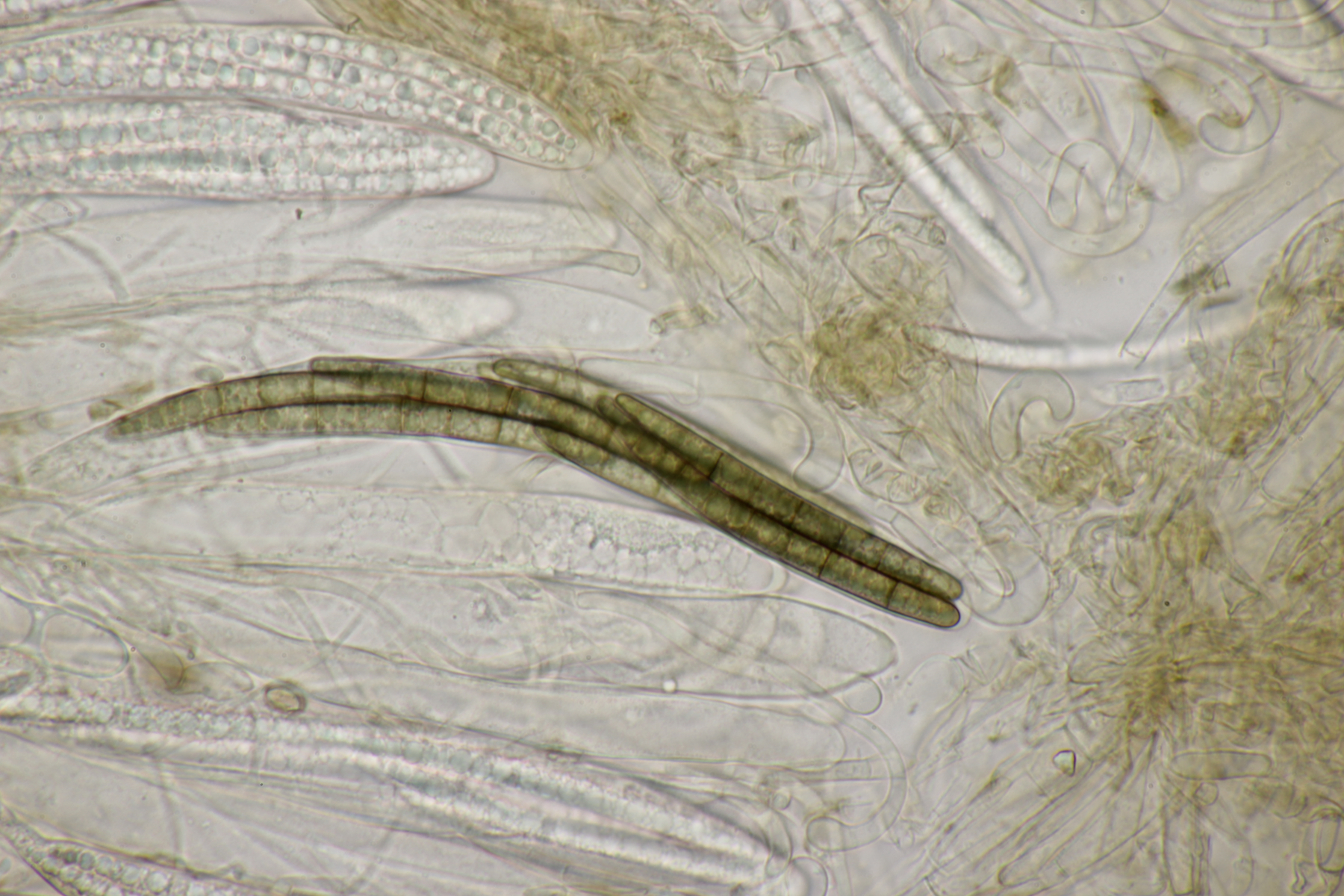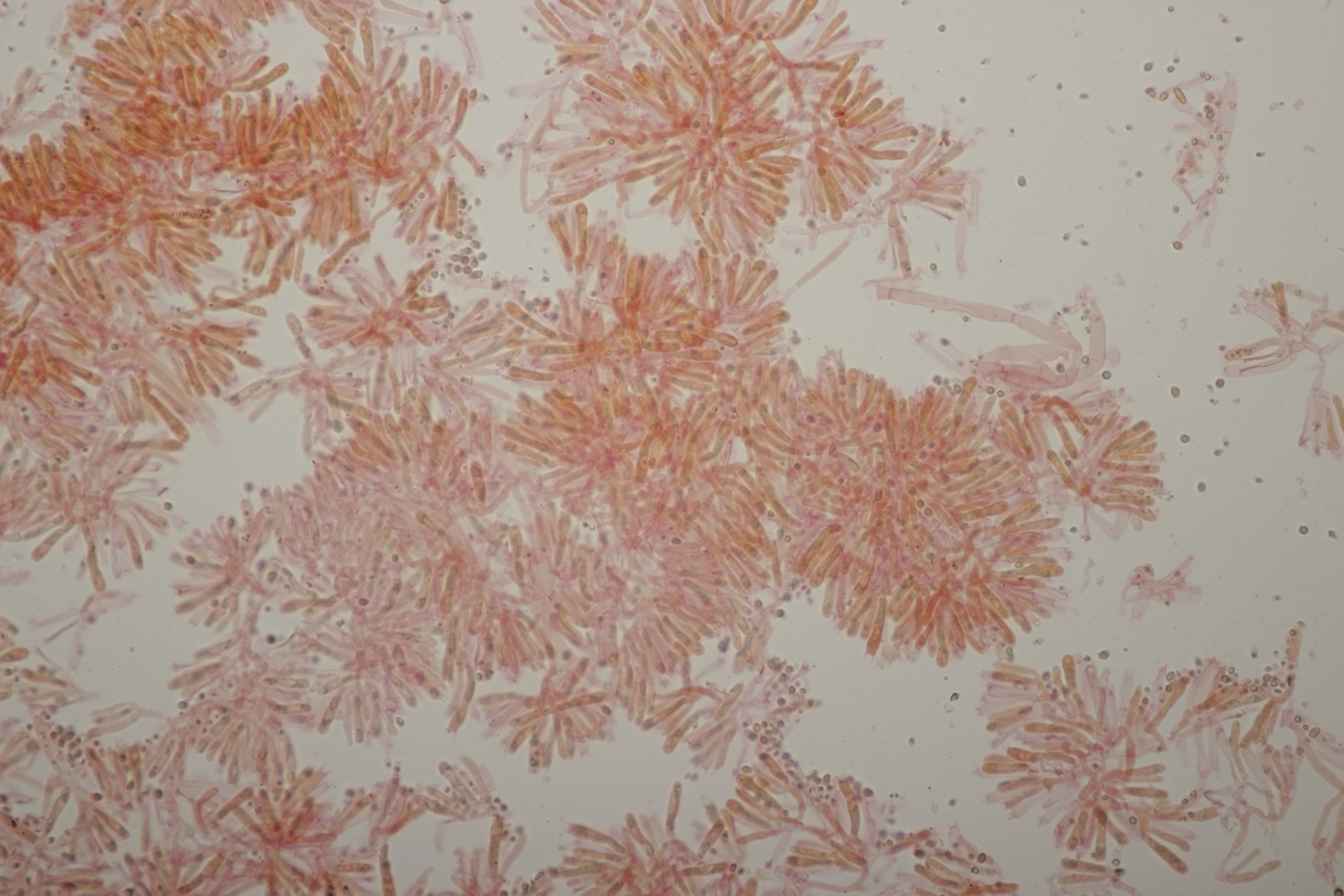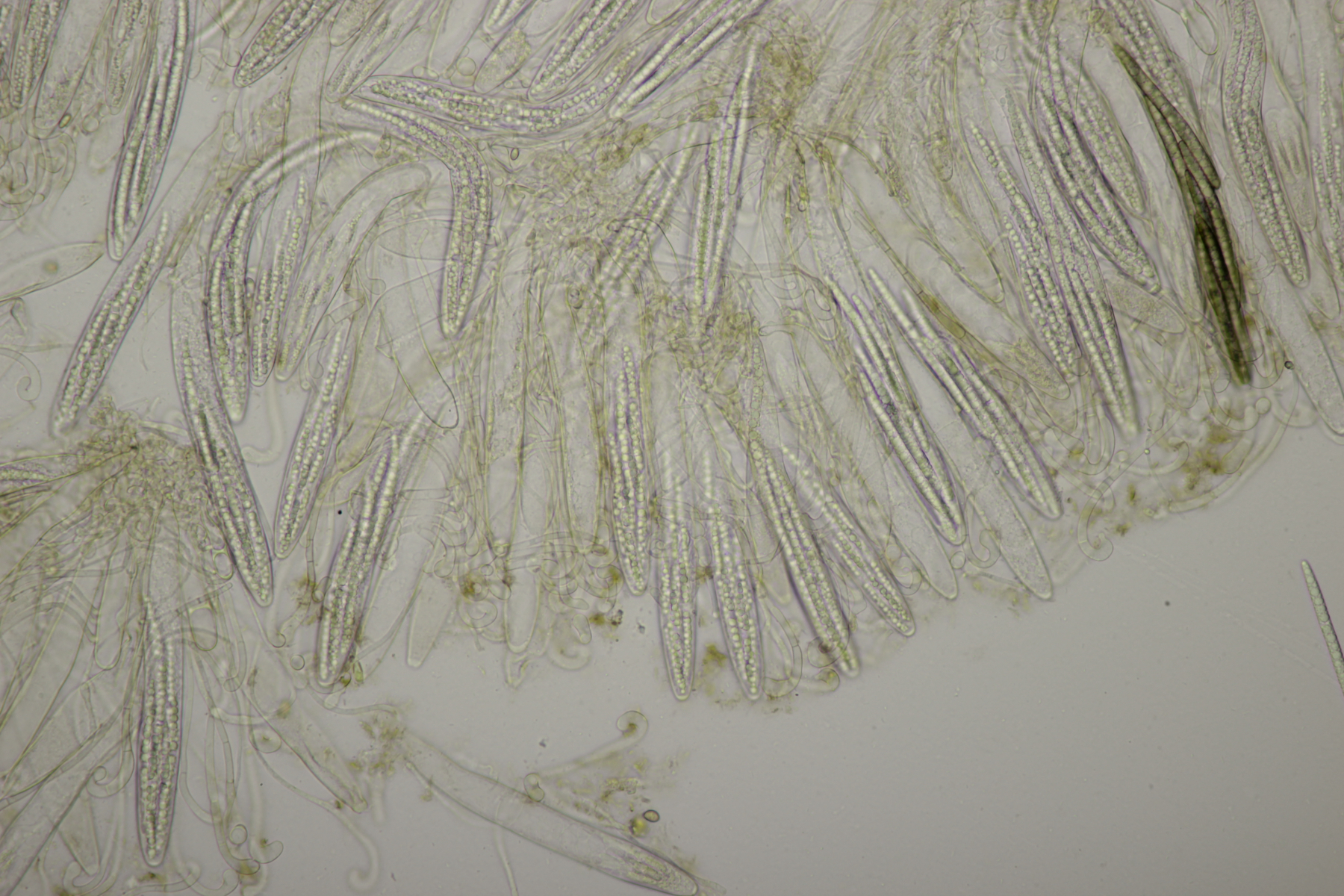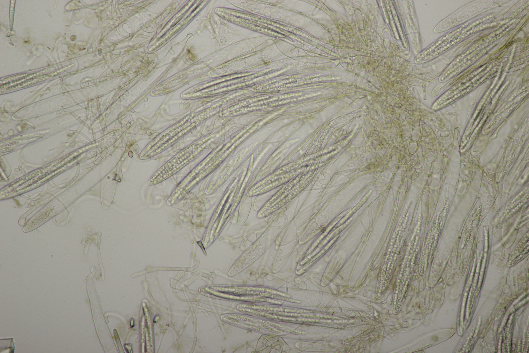 11. Die Sporen sind zwar mit (8.8+-0.6) µm x (5.4+-0.4) µm, Q=1.6+-0.1 bzw. (7.8-9.8) µm x (4.8-6.2) µm, Q=1.4-1.8 etwas klein, aber mit den Basidien mit den großen Ösen fällt mir außer Clavaria falcata nichts anderes ein.
