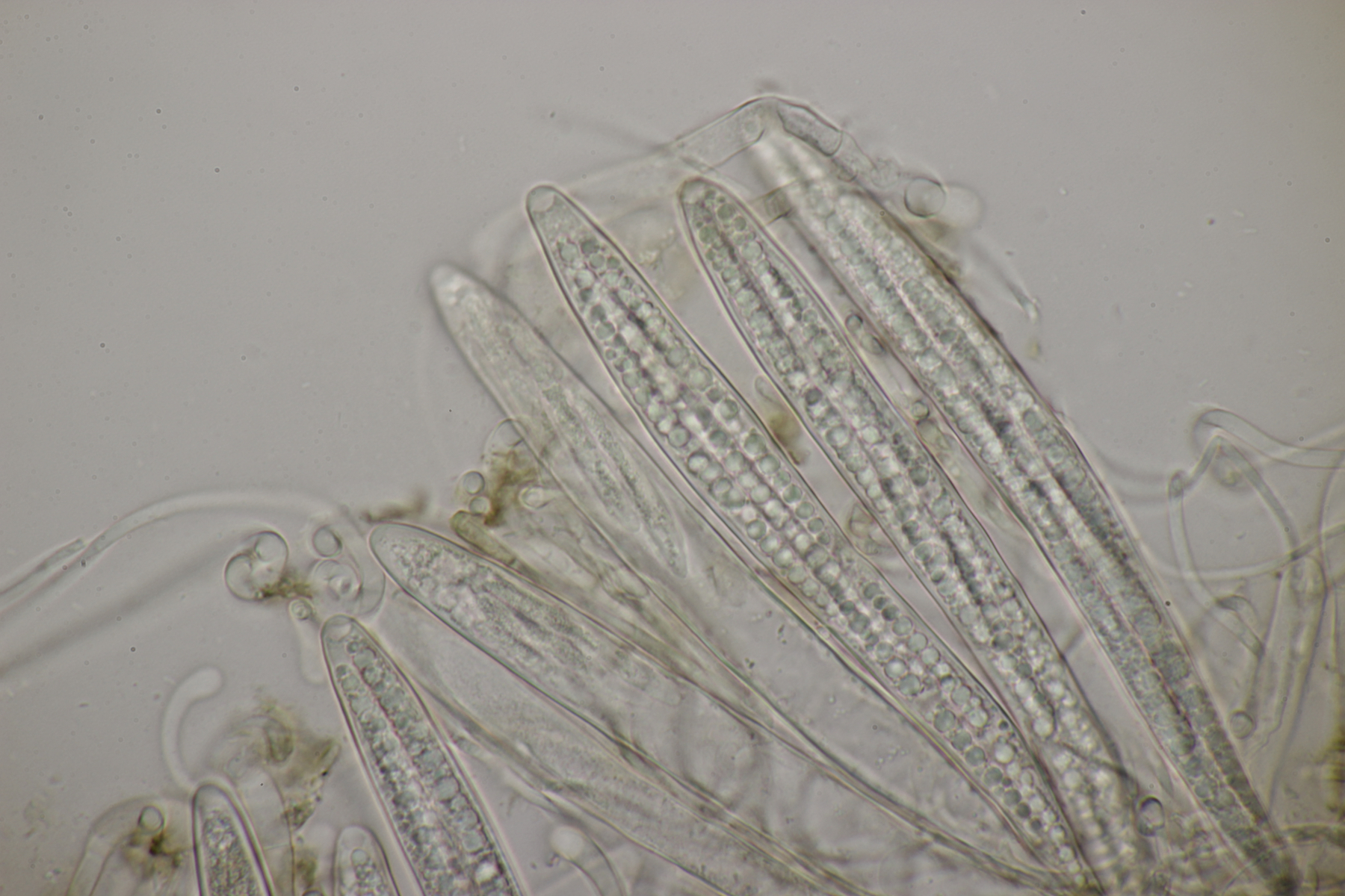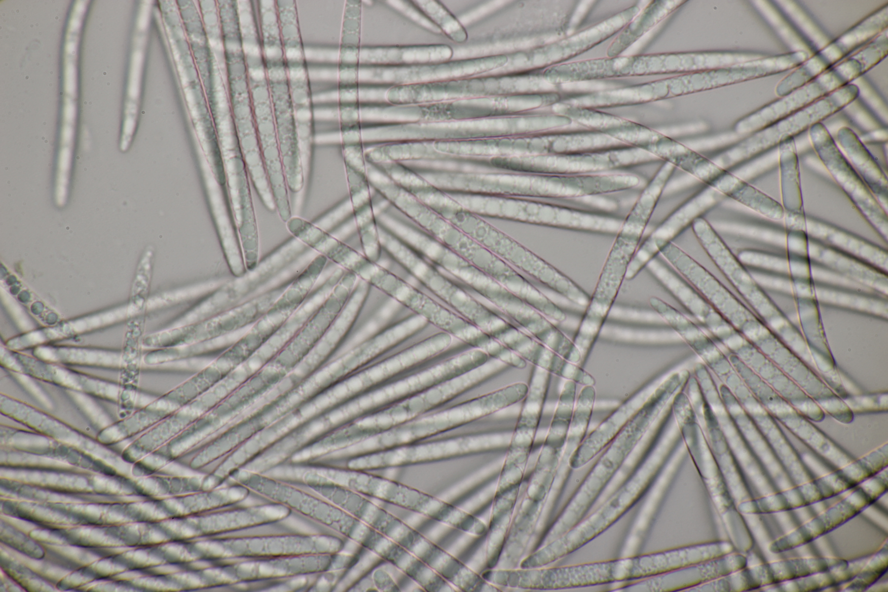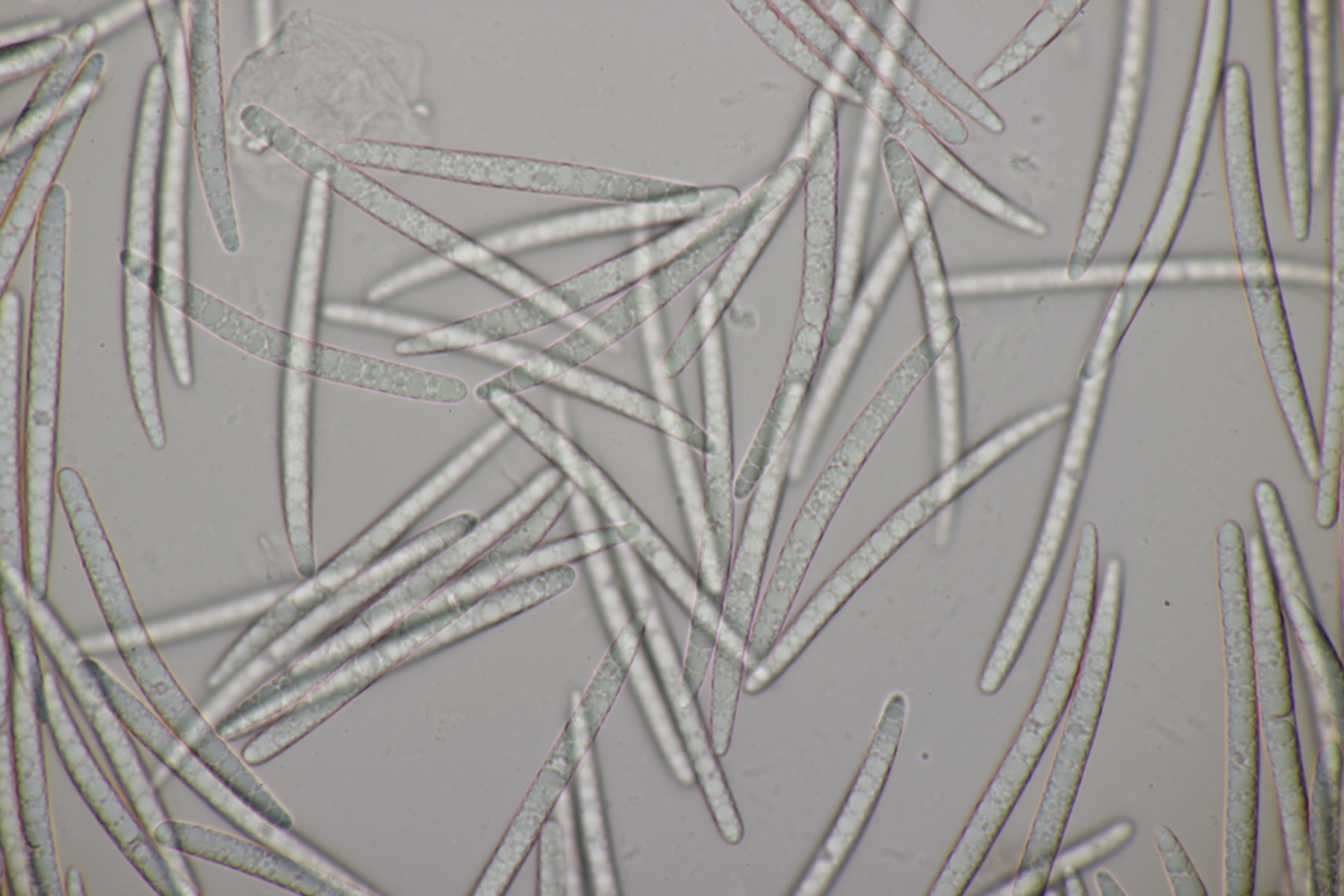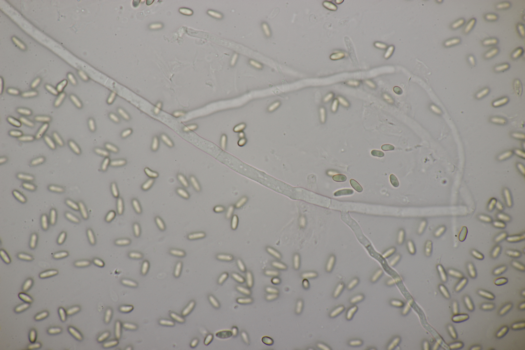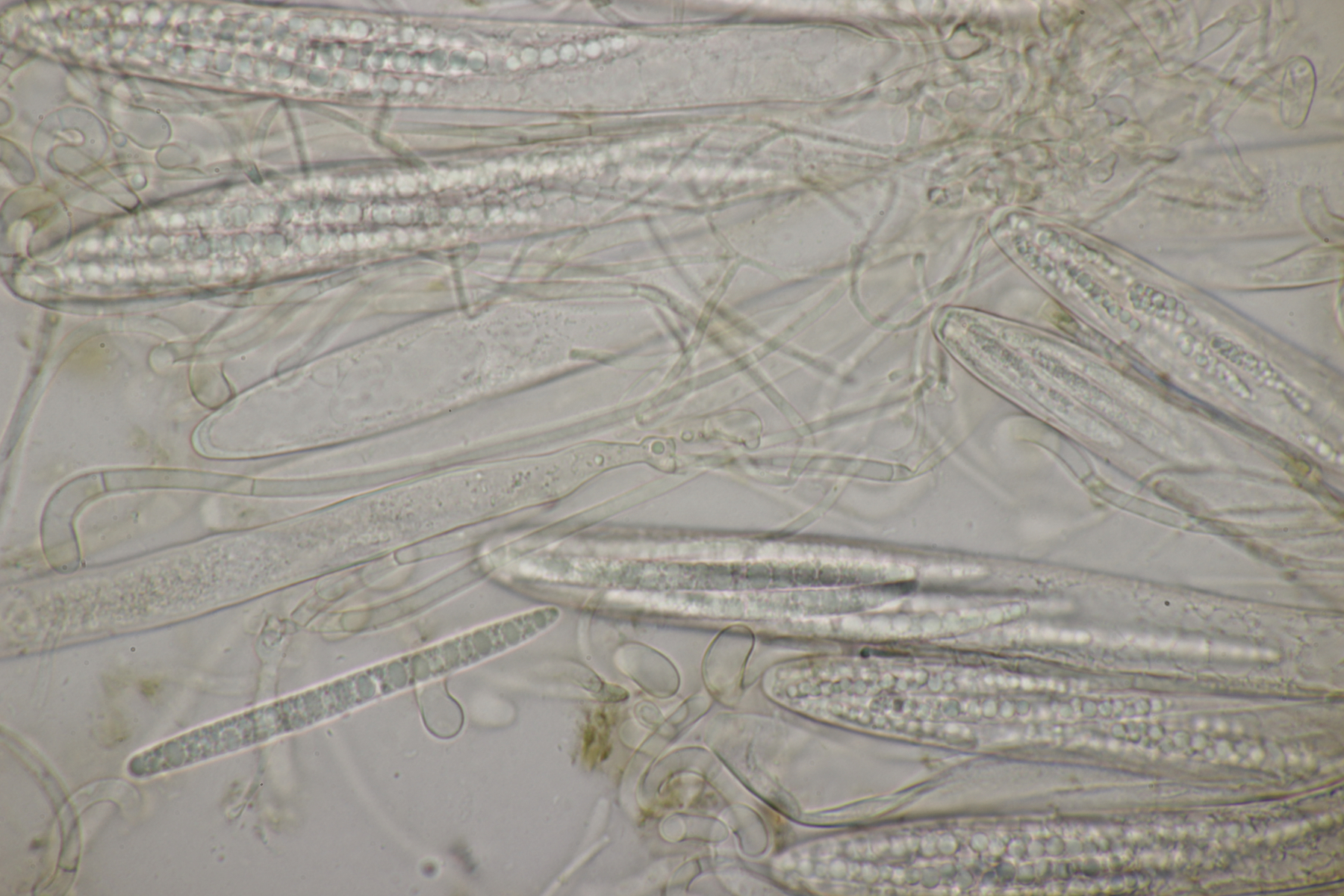 11. Die Sporen sind zwar mit (8.8+-0.6) µm x (5.4+-0.4) µm, Q=1.6+-0.1 bzw. (7.8-9.8) µm x (4.8-6.2) µm, Q=1.4-1.8 etwas klein, aber mit den Basidien mit den großen Ösen fällt mir außer Clavaria falcata nichts anderes ein.
