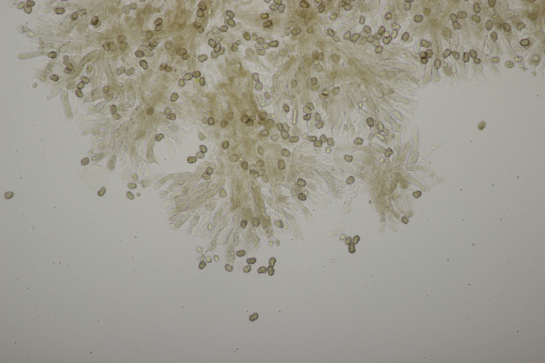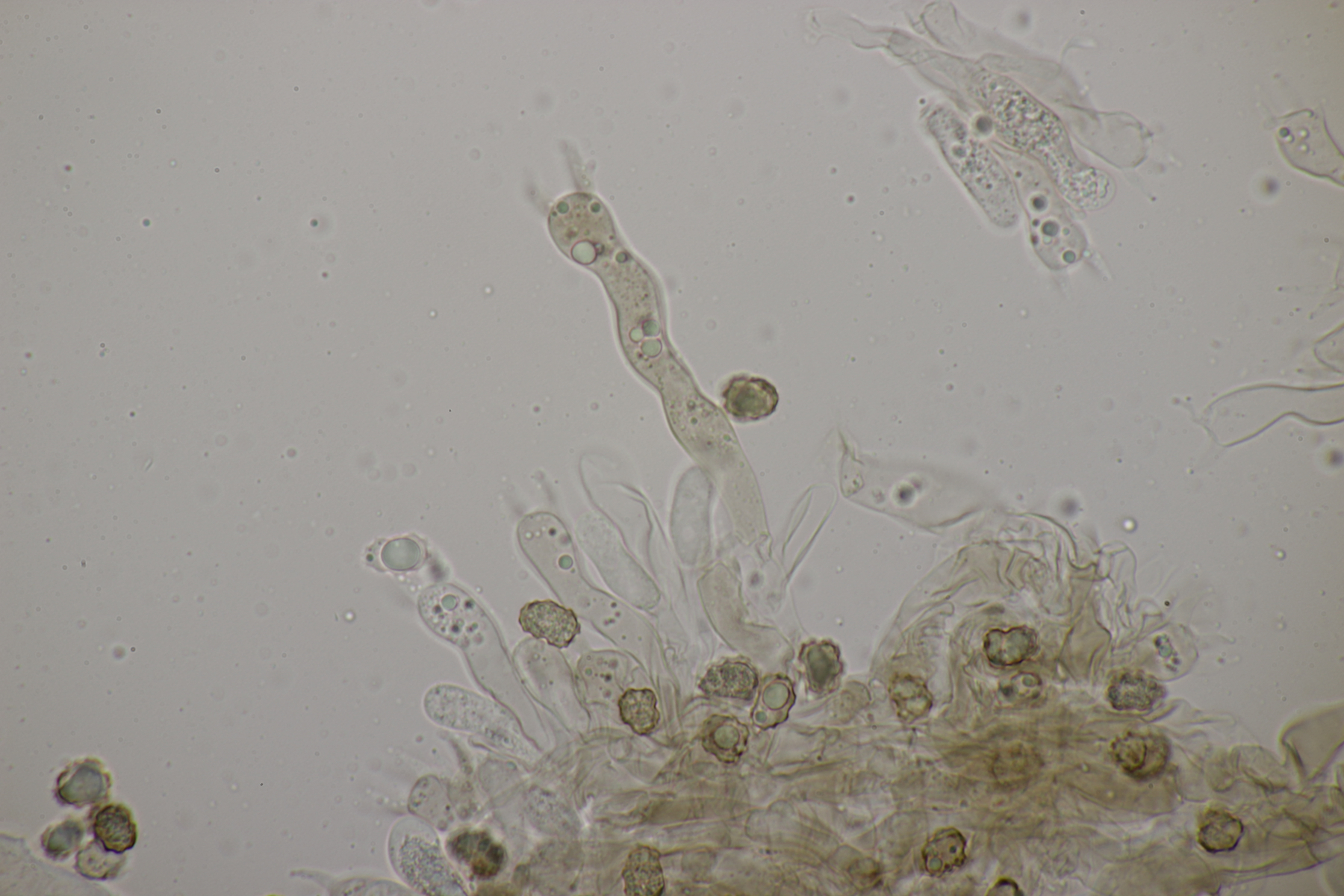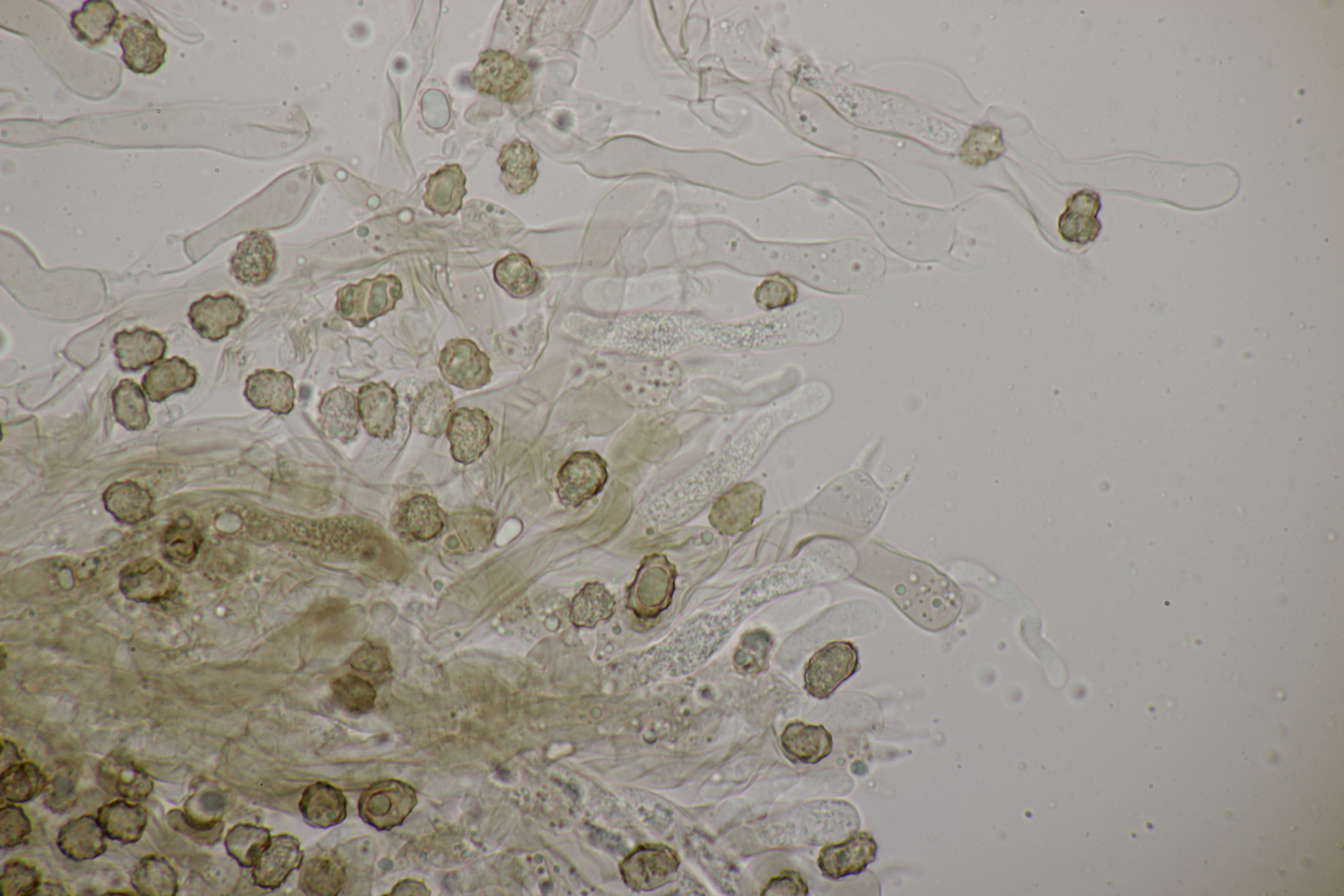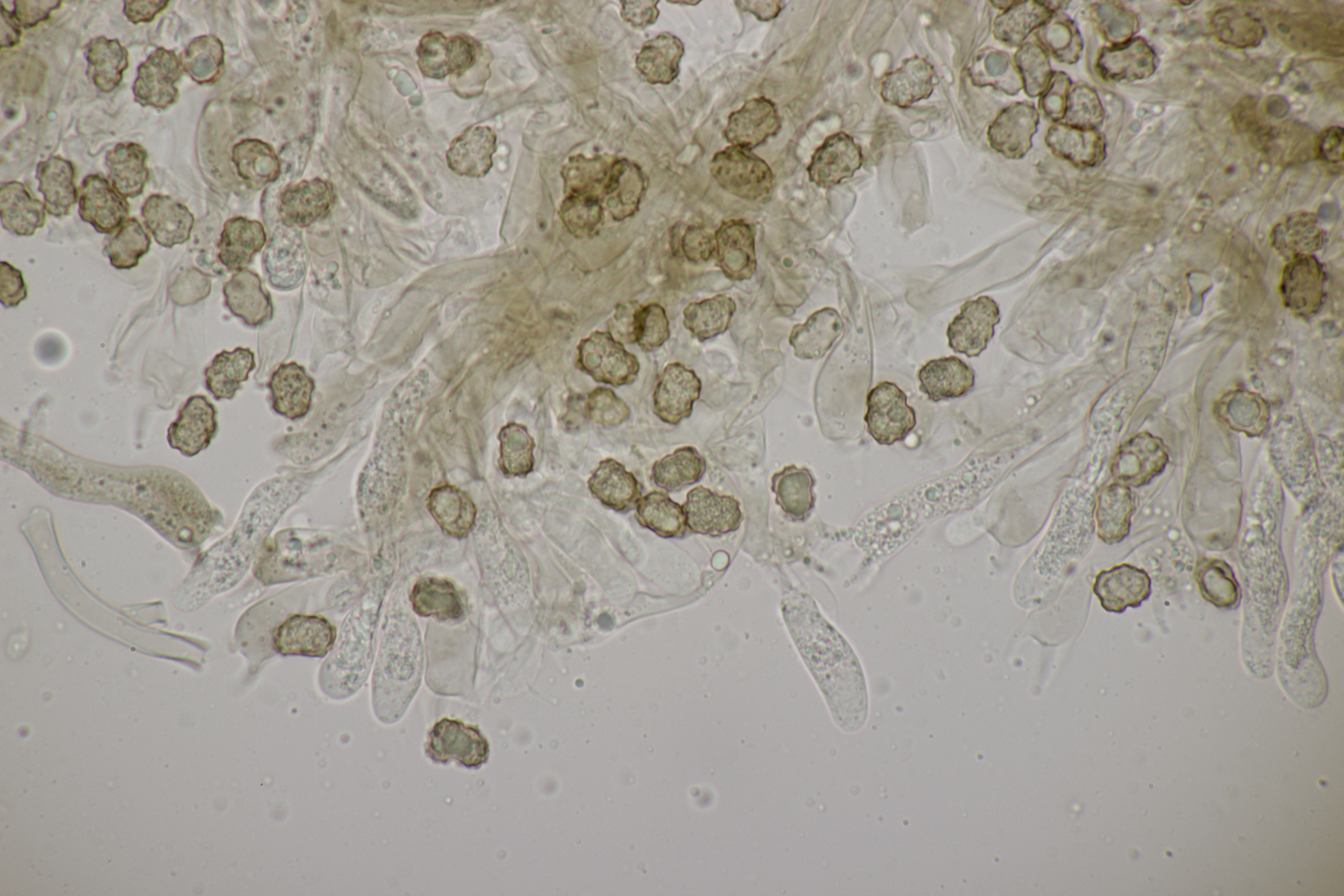 3. Noch mal Stäublinge. Dieses mal ohne Paracapillitium, Sporen (4.0+-0.2) µm bzw. (3.8-4.5) µm ohne Pedicel, fein warzig, Subgleba dunkel oliv-braun, ohne netzartige Struktur des Peridiums. Kann das Lycoperdon umbrinum sein?