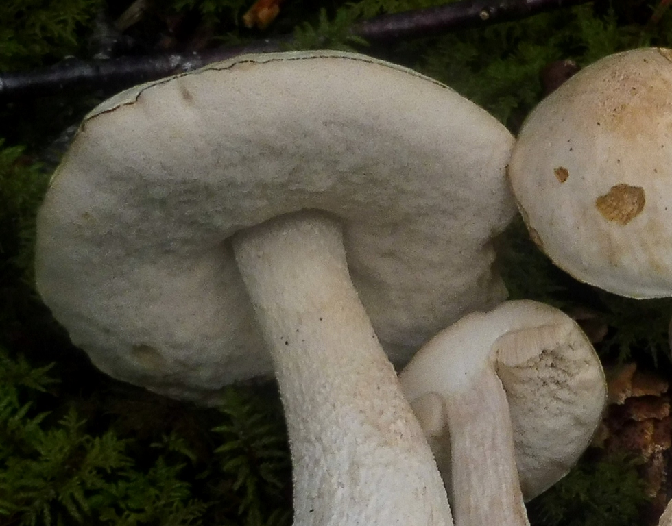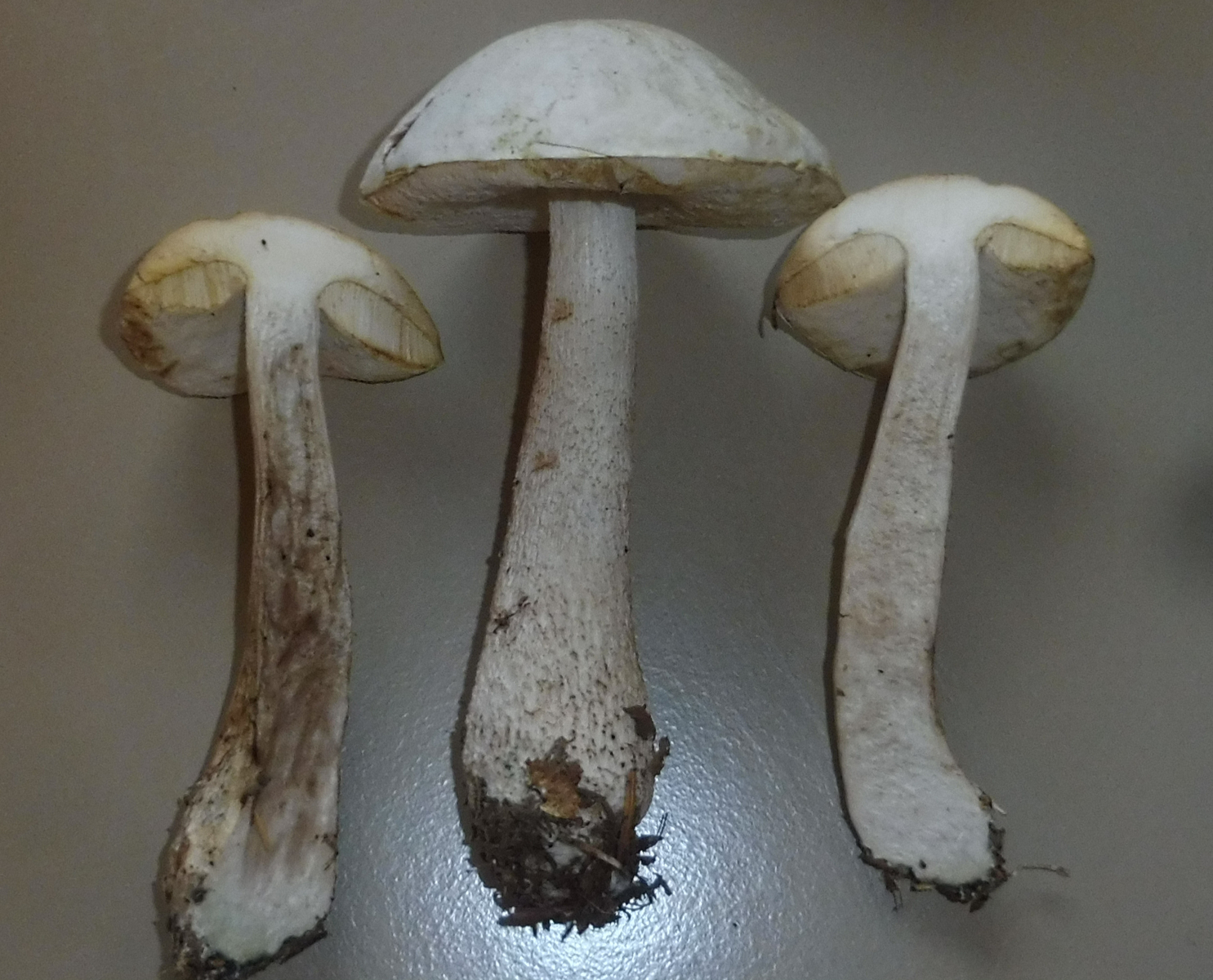 Da Amerikaner in Europa aber unwahrscheinlich sind und ich wenig weiße Arten kenne, die im Fleisch deutlich schwärzen, Leccinum roseotinctum ausschließen kann (makroskopisch), habe ich ihn Leccinum cf. percandidum genannt. Ich werde den Fund spätestens dann aufgearbeitet haben, wenn ich meine angedachte Artikelreihe über Leccinum s.l. soweit habe, dass ich diese weißen Arten bespreche.