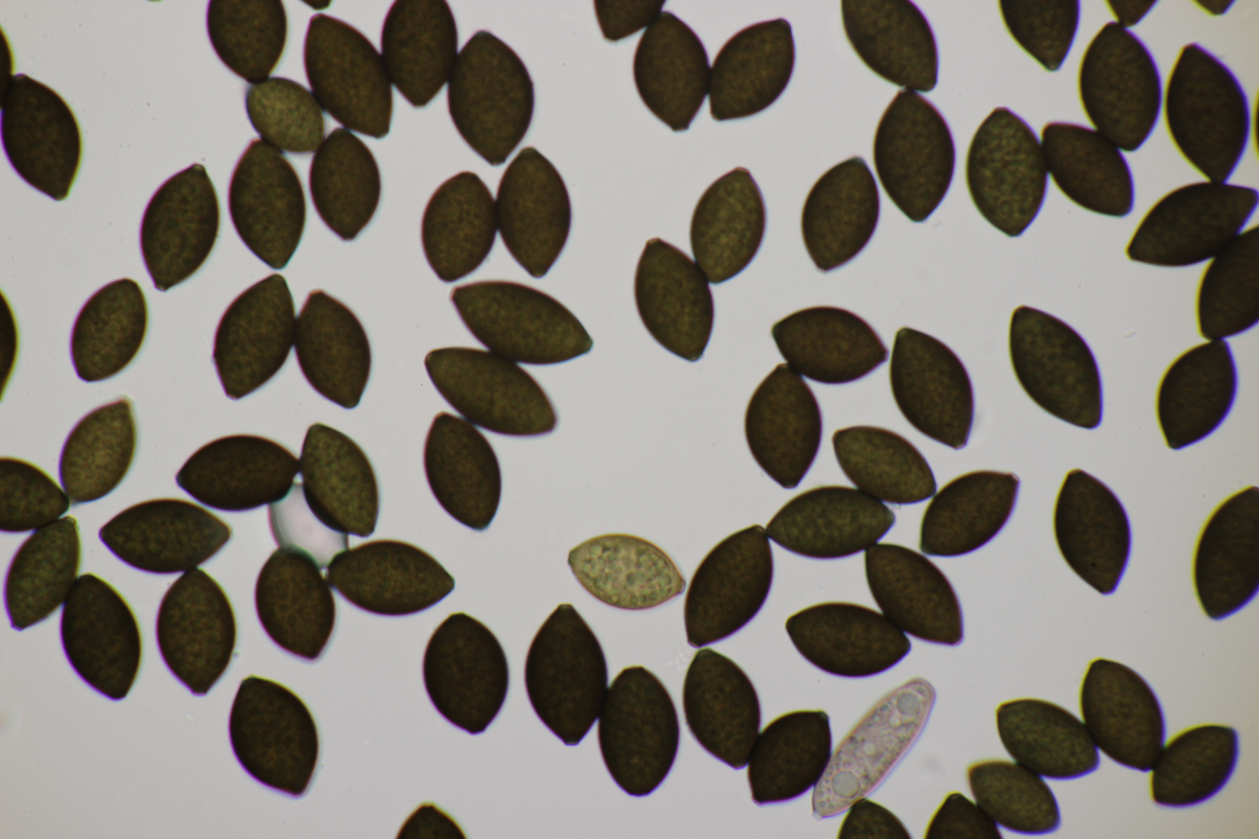 Sporen (9.7+-0.5) µm x (5.8+-0.3) µm, Q=1.7+-0.1 bzw. (8.9-11.1) µm x (5.1-6.3) µm, Q=1.5-1.8