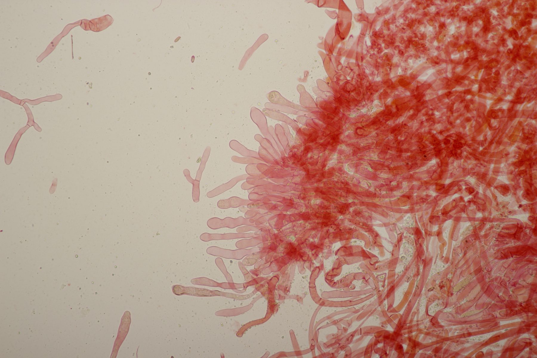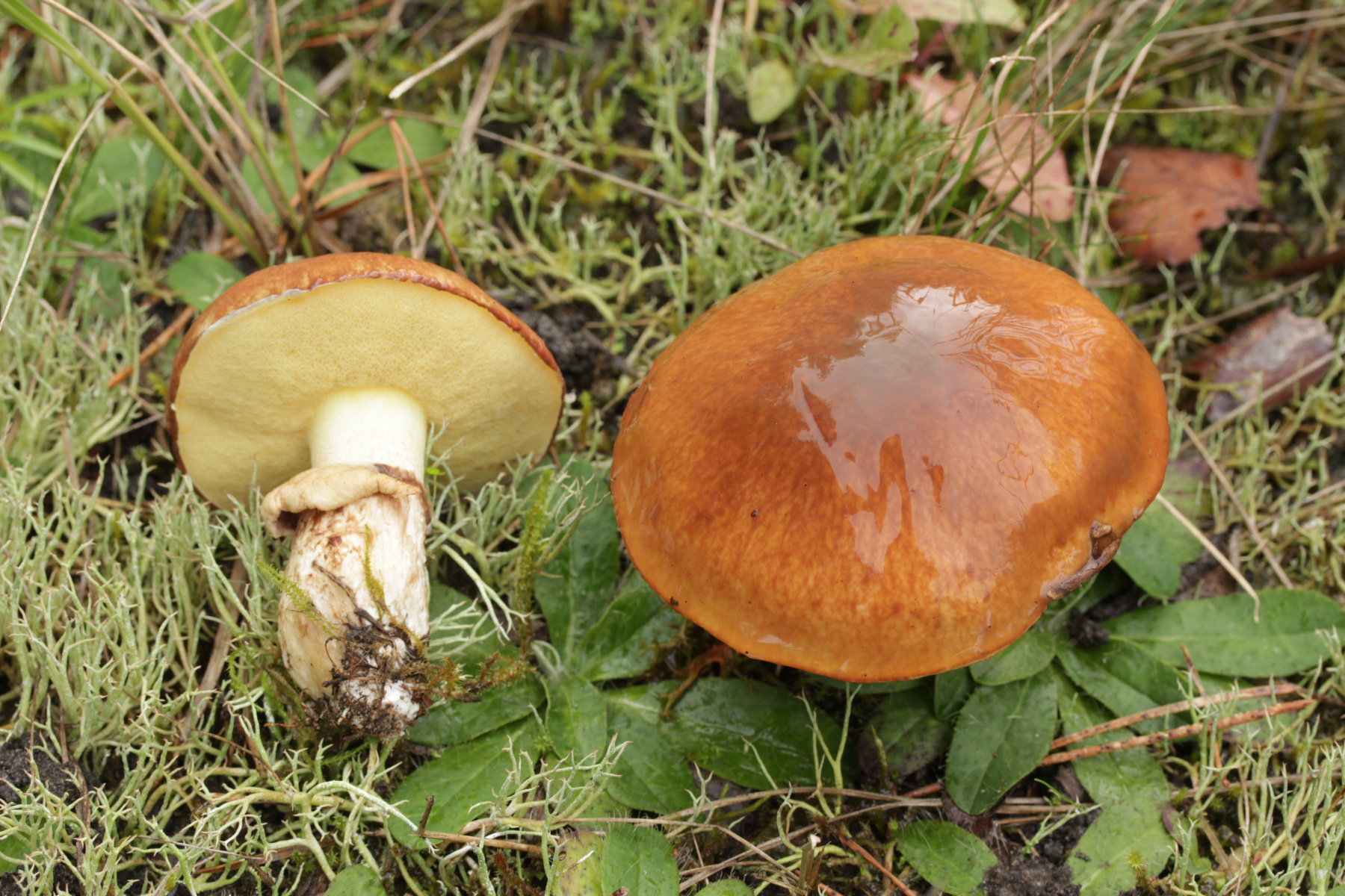 9. Der Stiel hatte kleine, braune Punkte (auf dem Foto leider nicht gut zu erkennen), Begleitbaum war Pinus sylvestris, das Fleisch reagierte mit KOH gräulich. Kann ich den damit als Suillus collinitus ablegen? Auf das Basismyzel habe ich leider nicht geachtet ![]()