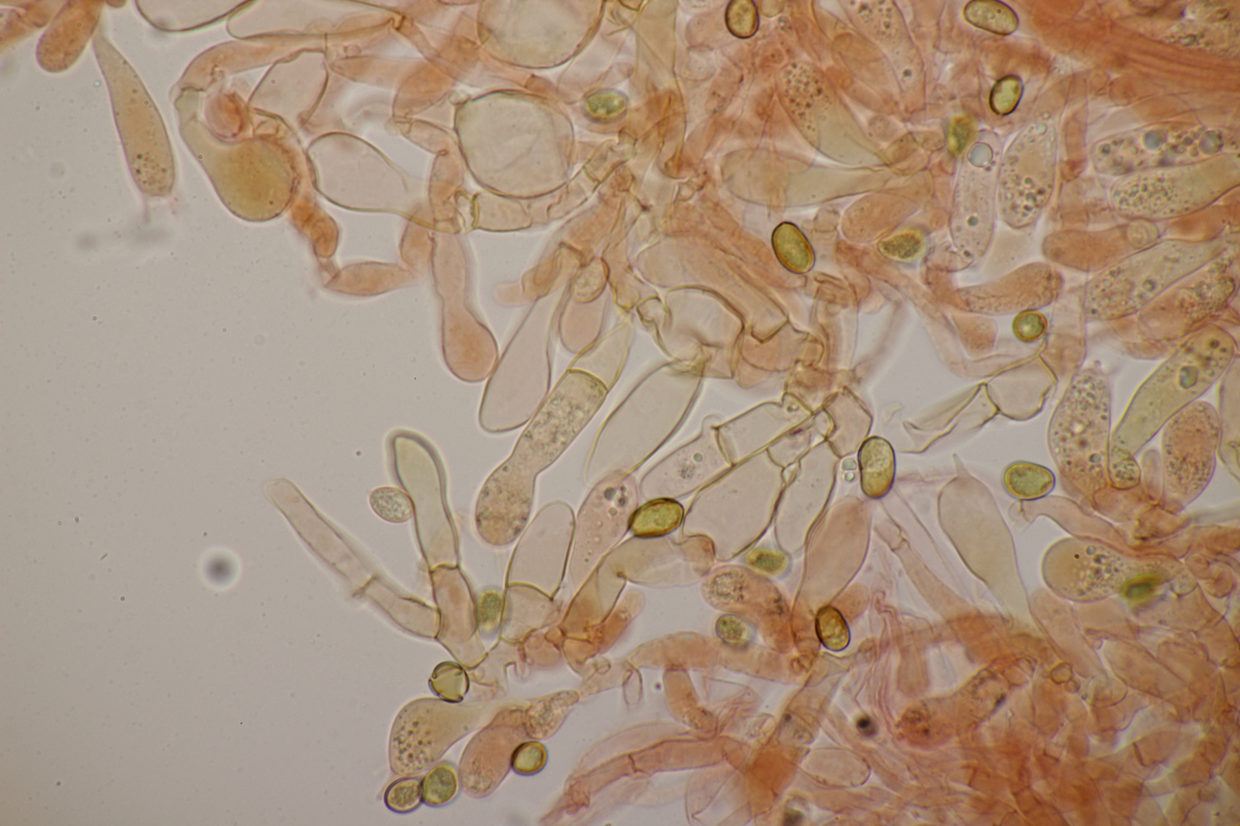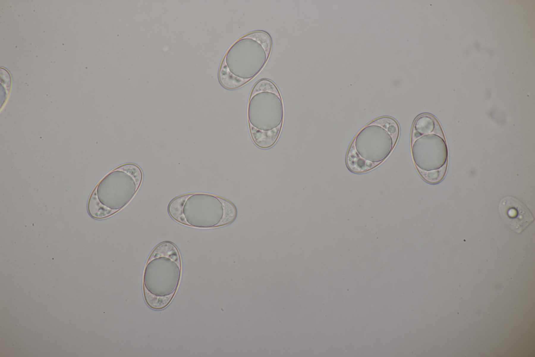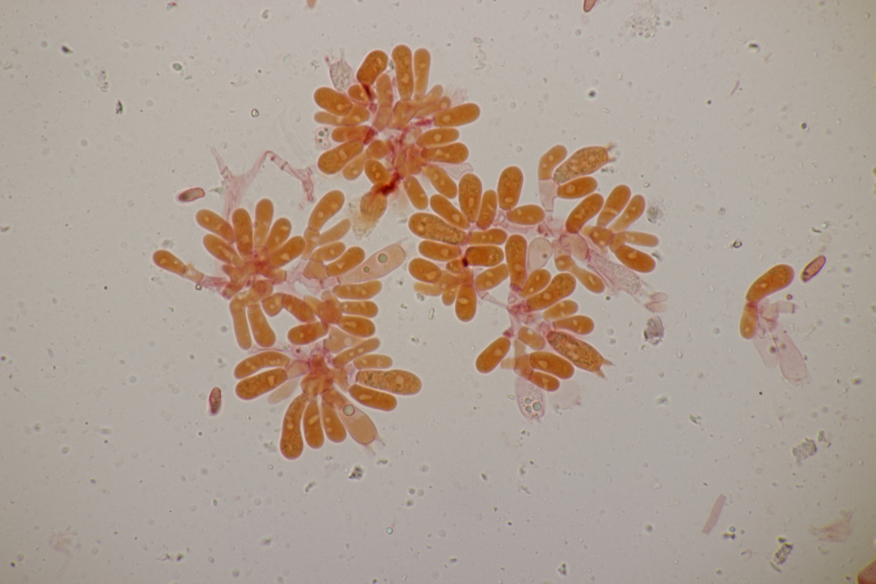 Sporen (8.5+-0.5) µm x (3.6+-0.1) µm, Q=2.4+-0.2 bzw. (7.8-9.8) µm x (3.4-3.8) µm, Q=2.1-2.8