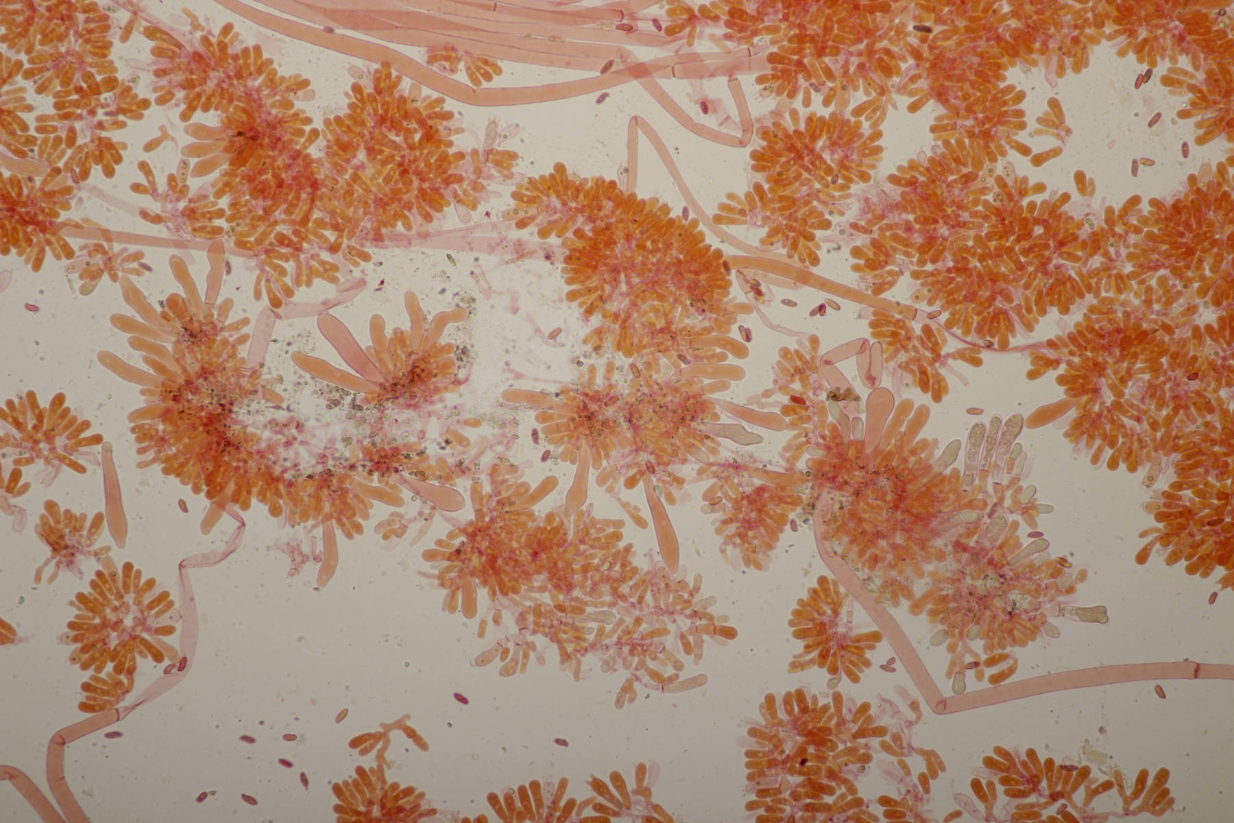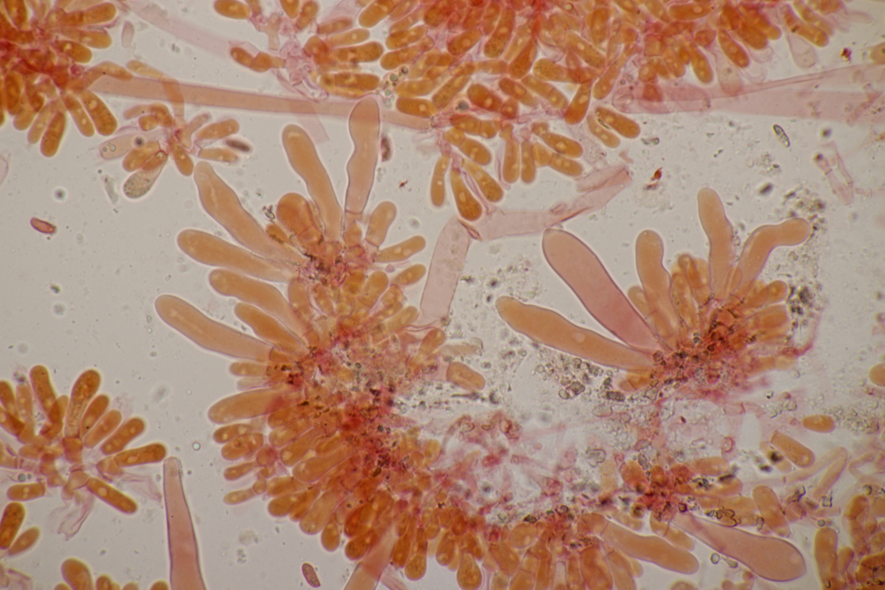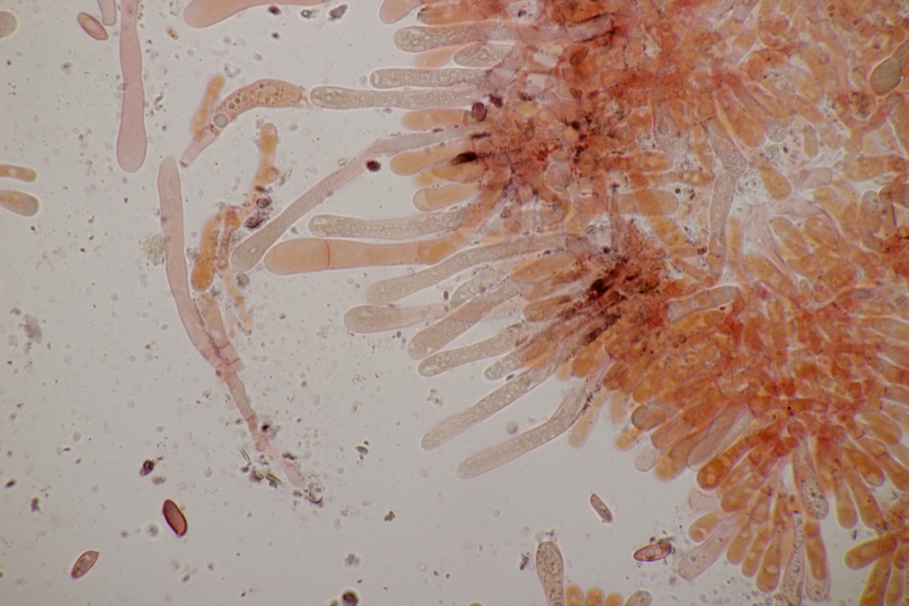 Sporen (8.5+-0.5) µm x (3.6+-0.1) µm, Q=2.4+-0.2 bzw. (7.8-9.8) µm x (3.4-3.8) µm, Q=2.1-2.8