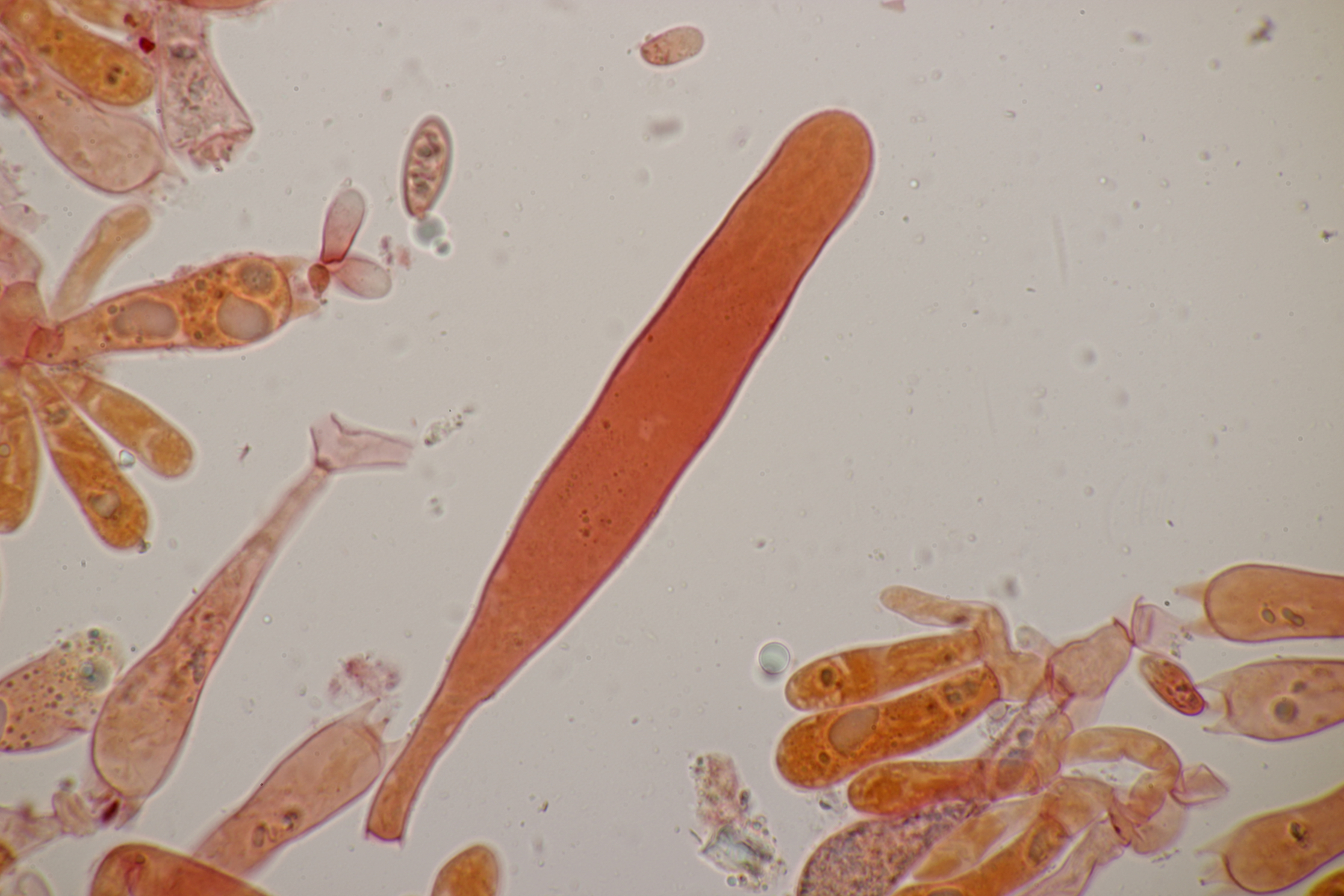 7. Eine Inocybe um I. dulcamara. Wenn ich mit Dittes Seite vergleiche, paßt von der Zystidenform her I. dulcamara am besten. Aber was heißt das schon bei Rißpilzen...