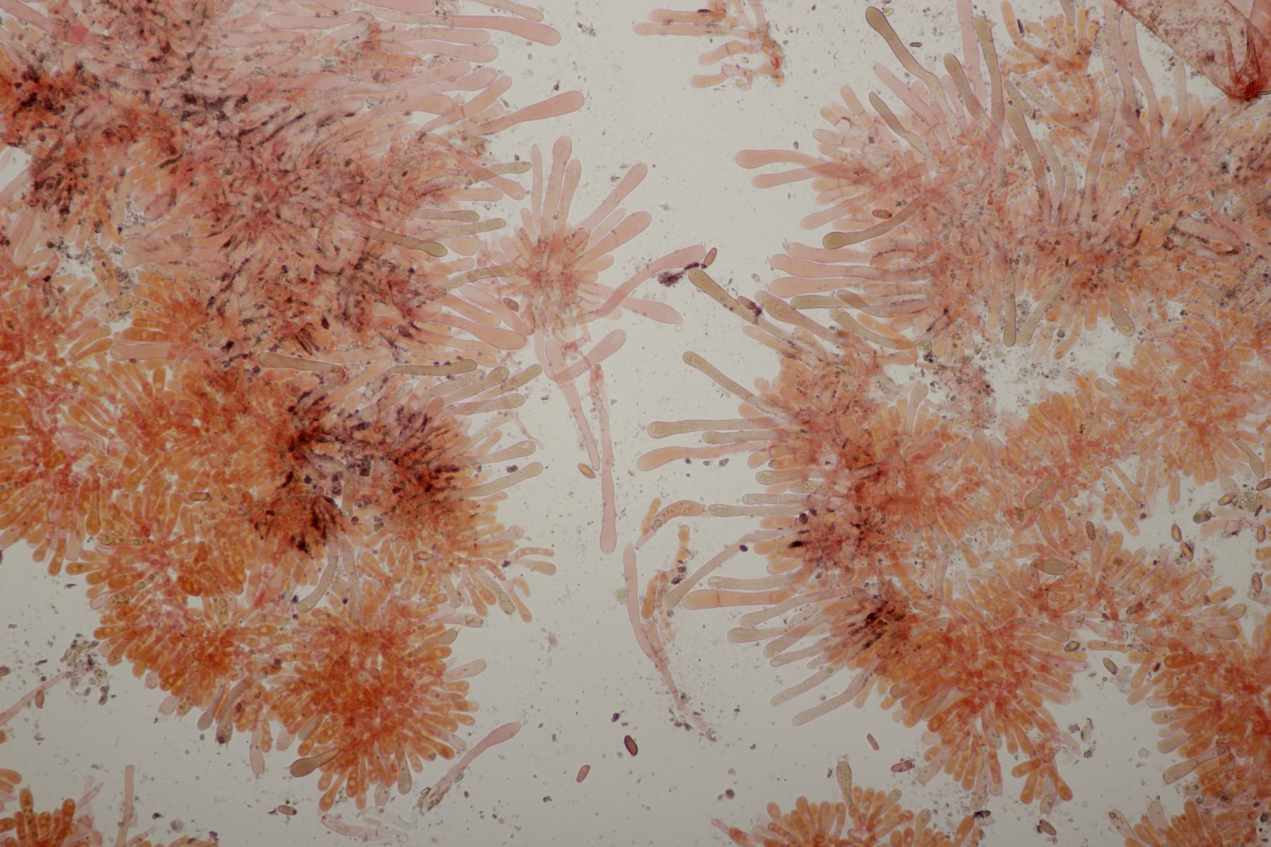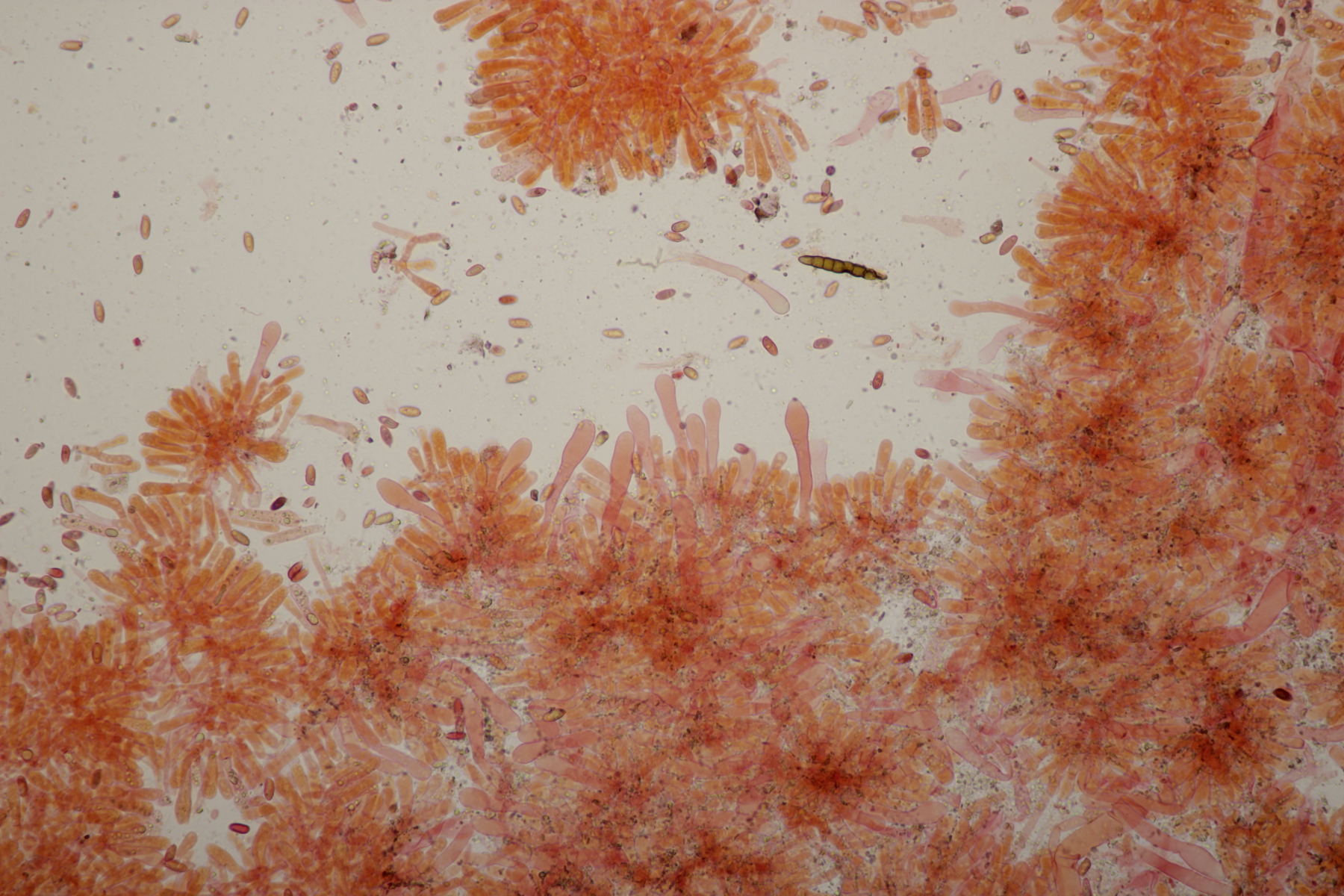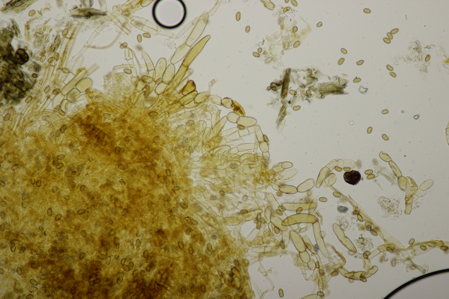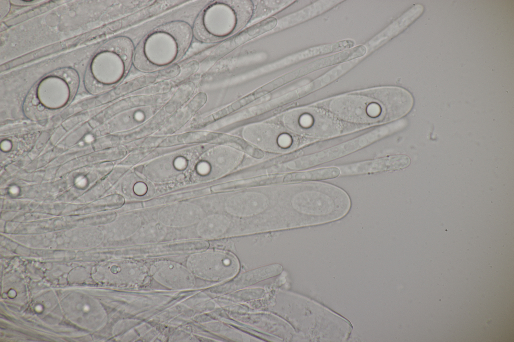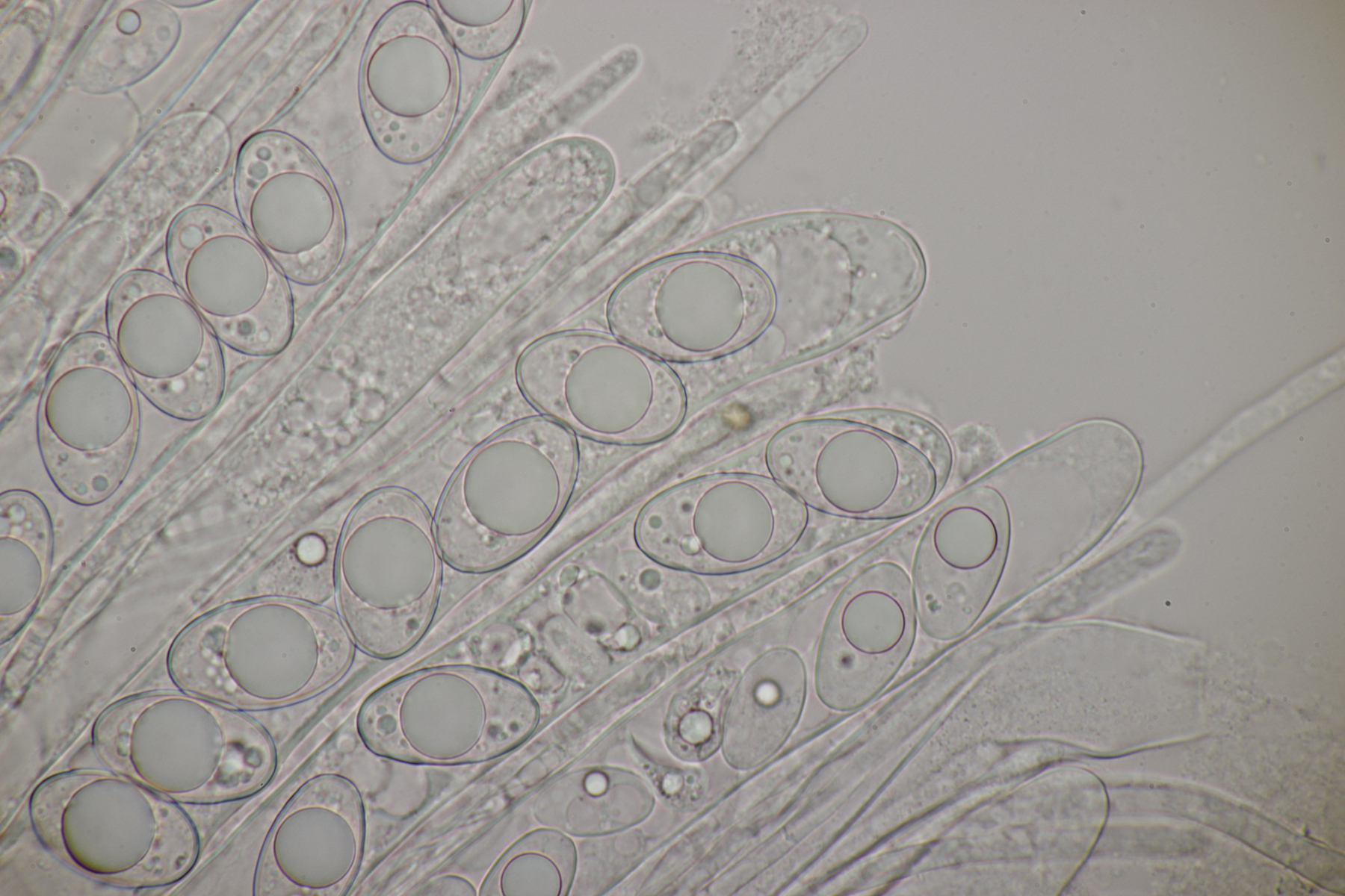 1. Eine Geopora mit Befall. Sporengröße (22.9+-1.6) µm x (13.3+-0.9) µm, Q=1.7+-0.1 bzw. (20.2-26.6) µm x (11.0-15.5) µm, Q=1.5-2.1, was für Melanospora tulasnei spricht, wobei ich auch einen Artikel gefunden habe, der die Art und M. brevirostris zusammenwirft.