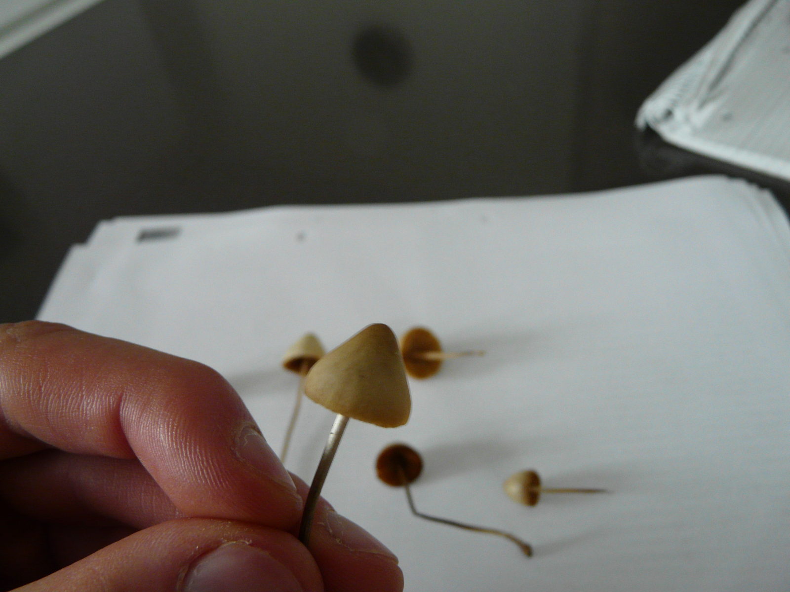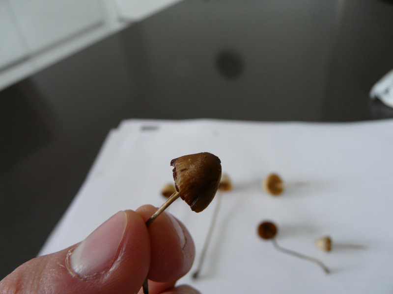 Hallo, ich war heute auf ein paar Kuhwiesen unterwegs und habe, neben Düngerlingen, sehr viele dieser Pilze gefunden. In meinem Bestimmungsbuch konnte ich jedoch keinen Pilz dieser Art finden. Sieht ein wenig aus wie der Spitzkegelige Kahlkopf, aber auch nicht so ganz...