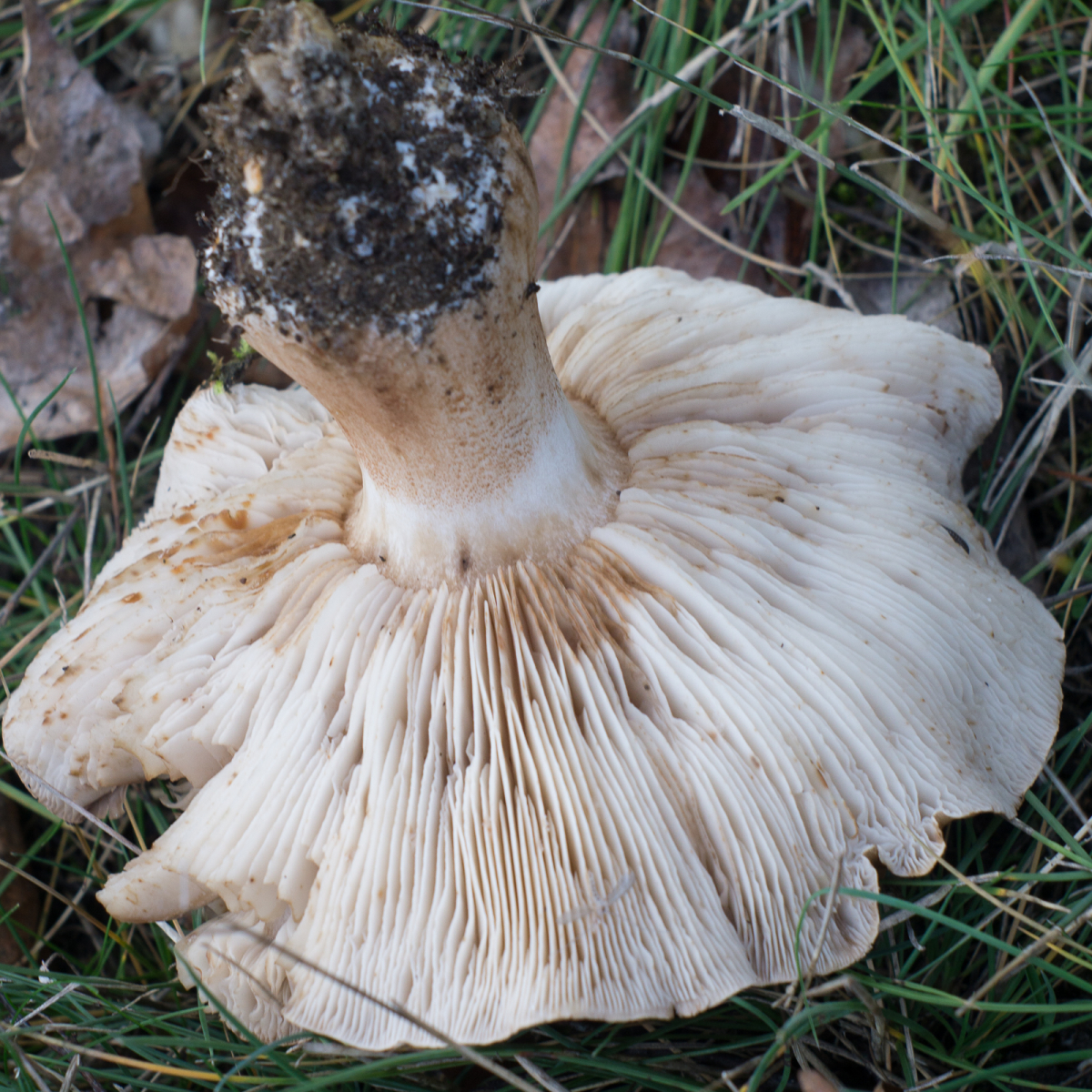Selbes Habitat und gleiche Begleitpilze aber die Lamellen haben einen gelblichen Schimmer und werden rostfleckig. Der Stiel scheint zu bräunen. Ebenfalls Mehlgeruch.