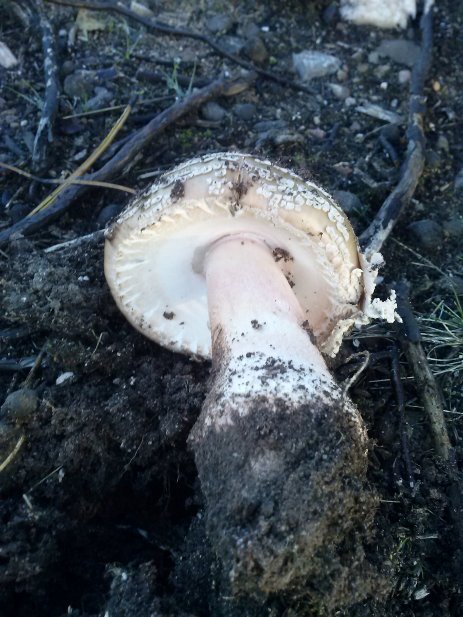 Die Pilze wuchsen in einem Heideboden, genauer gesagt darunter und sind im Familienverbund durch die oberste Bodenschicht gebrochen. Die Exemplare machen einen eher festen Eindruck, die Lamellen sind dicht an dicht und mit einem rosa schimmerndem Häutchen abgedeckt.